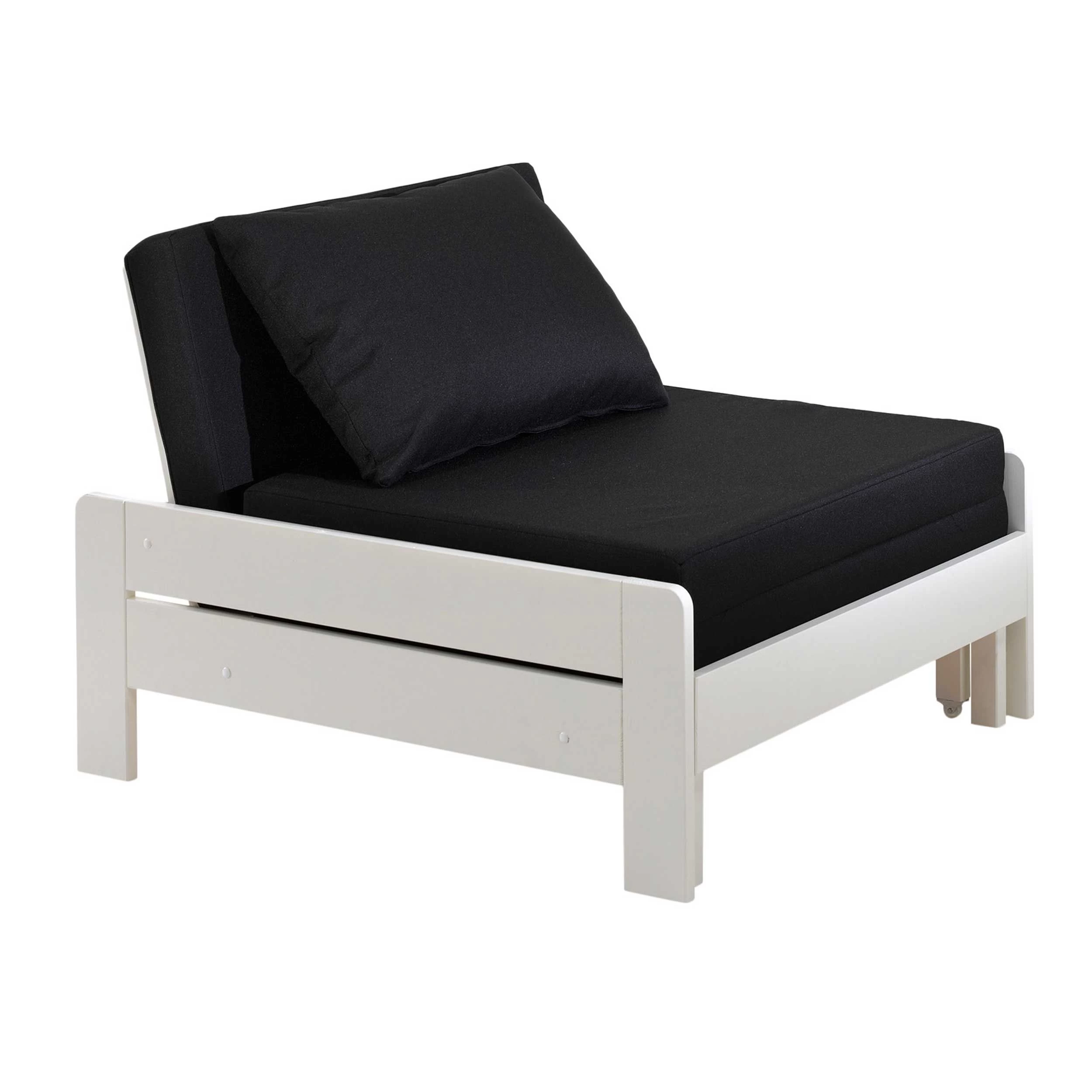 Ce lit mezzanine fait partie de la populaire collection Claire. Le lit est fabriqué en pin massif et est laqué en blanc. La laque est à base d’eau et ne contient aucune substance nocive. Cette couchette haute est équipée d’une protection descendante. Vous pouvez accéder en toute sécurité à la zone de couchage grâce à l’échelle pratique. L’espace sous le lit peut être utilisé pour la commode et le canapé-lit. De cette façon, vous créez un coin salon confortable et vous avez rapidement un lit d’invité prêt. La commode à 4 tiroirs offre beaucoup d’espace de rangement pour, par exemple, le linge de lit, les vêtements, etc… Le sommier à lattes est inclus. Le matelas doit être acheté séparément. Nous vous recommandons notre matelas Confort, 140×200 cm.