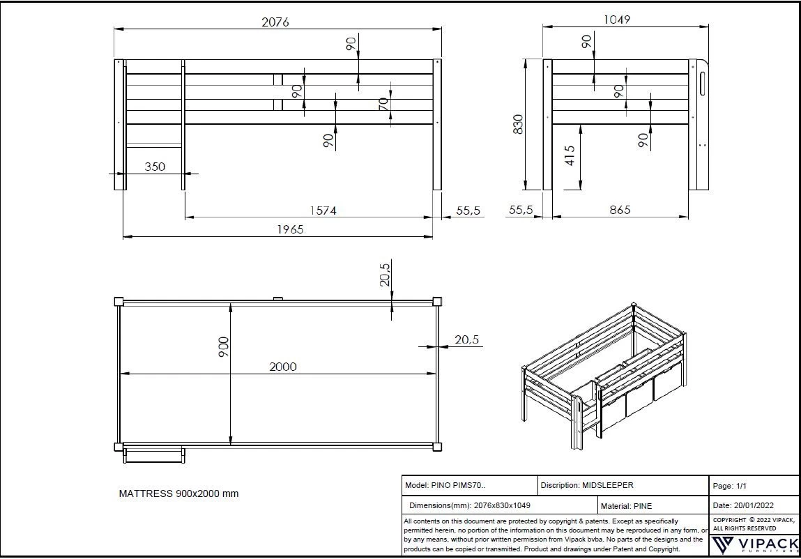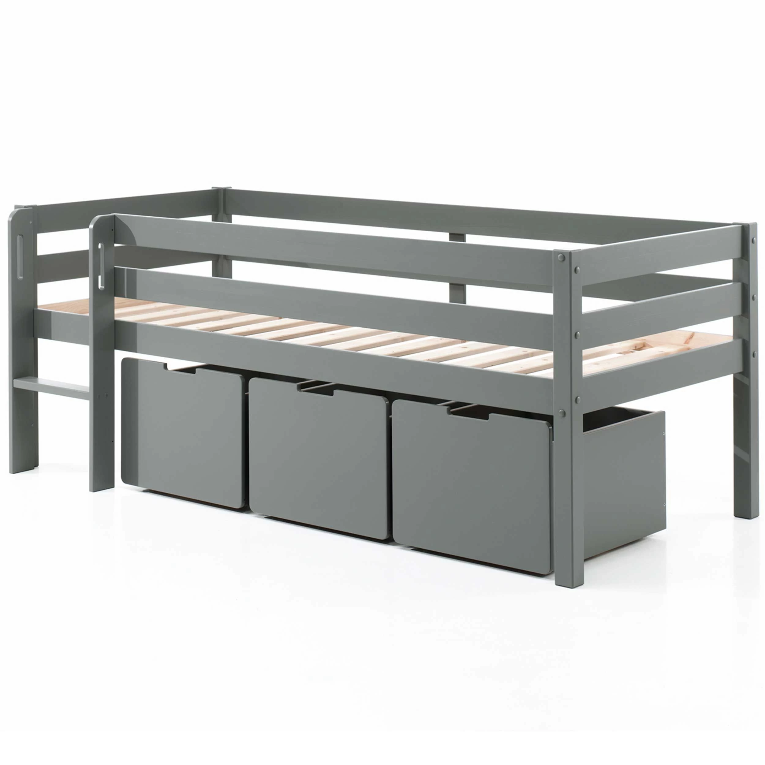 Un lit mi-hauteur est le moyen idéal d’utiliser de manière optimale tout l’espace de la chambre d’enfant. Ce lit Pip est fabriquée en bois de pin massif et est très robuste. Le lit a une échelle avec des poignées et des côtés hauts. Cela évite à votre enfant de tomber du lit. Les parents peuvent donc dormir sur les deux oreilles également. Les trois tiroirs à roulettes situés sous le lit offrent un espace de rangement suffisant pour les jouets, les vêtements, etc. Découvrez toutes les possibilités qu’offre la collection Pim sur notre site web.