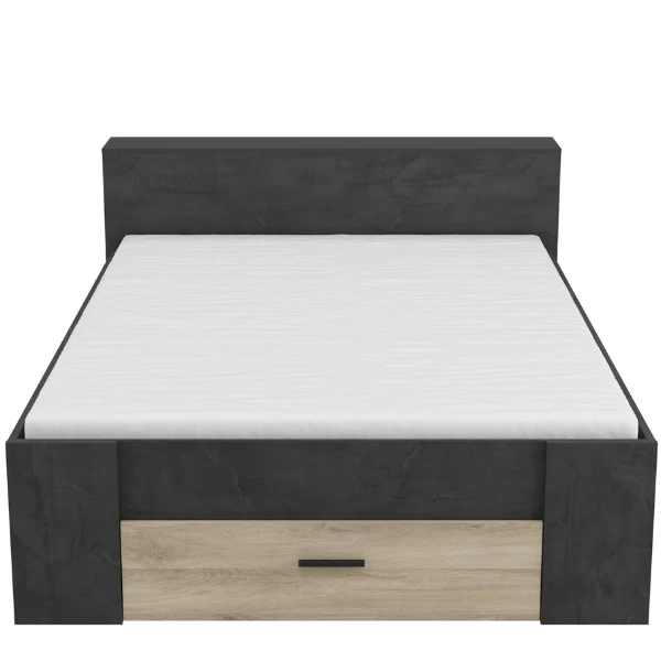 Optez pour un look industriel dur dans la chambre à coucher avec lit Polly en noir Sidewalk rugueux et décor chêne Kronberg magnifique. Les 6 niches sur les côtés de la tête de lit sont peu encombrantes donné que vous ne devez plus prévoir des tables de chevet. Sur la tête de lit même vous pouvez mettre quelques décorations pour personnaliser votre chambre à coucher. Dan les 2 tiroirs sous le lit vous pouvez stocker votre literie et dans les 2 niches il y a encore de l’espace pour des livres ou des boîtes à chaussures. Regardez notre site pour un matelas et un sommier assorti de 140 x 190 cm.
