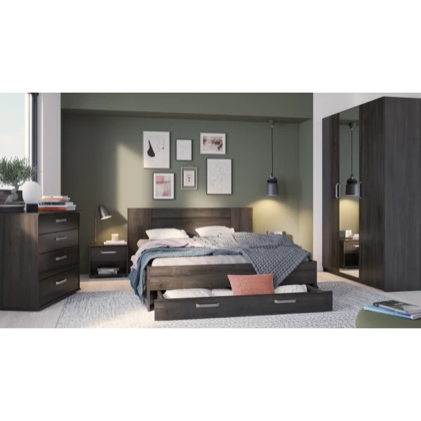 Ce lit est l’incarnation de la simplicité et de l’élégance grâce à son décor chêne Waterford chic. Le tiroir pratique situé au pied du lit offre un espace de rangement pour les coussins et la literie. Par ailleurs, ce lit est extensible de 190 cm à 200 cm et dispose d’une traverse de renfort centrale . Consultez notre site pour trouver le matelas et le sommier 140 x 190 cm ou 140 x 200 cm ou les 2 matelas et sommiers de 80 x 190/200 cm qui vous conviennent le mieux.