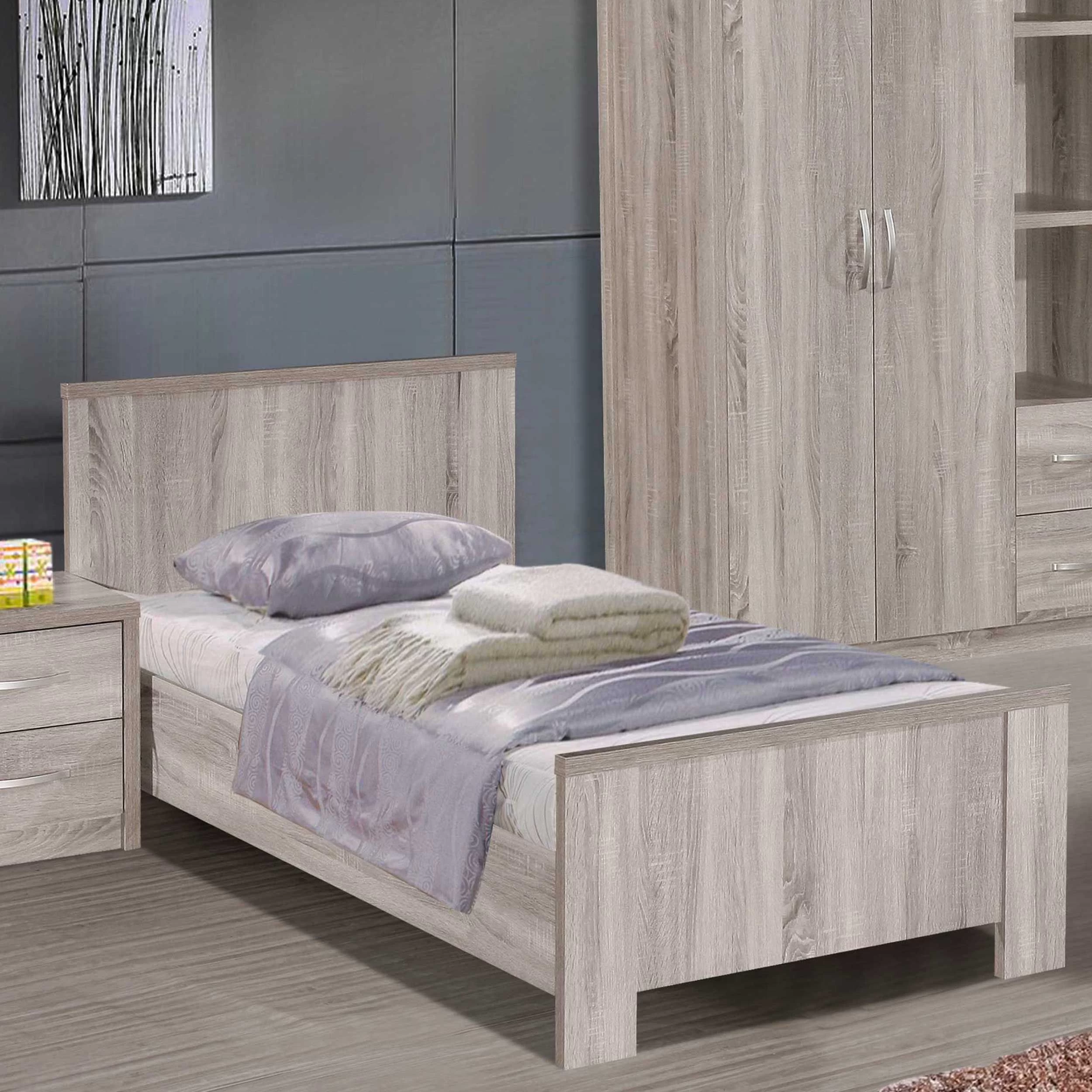 Vous trouverez sans aucun doute le lit de vos rêves chez Emob. Le lit Noémie est fait d’aggloméré avec un beau décor en chêne sonoma. Le sommier à lattes et le matelas ne sont pas inclus. Ce lit convient pour un sommier à lattes et un matelas de 90 x 200 cm. Nous vous recommandons le matelas Comfort (disponible séparément dans notre boutique en ligne).