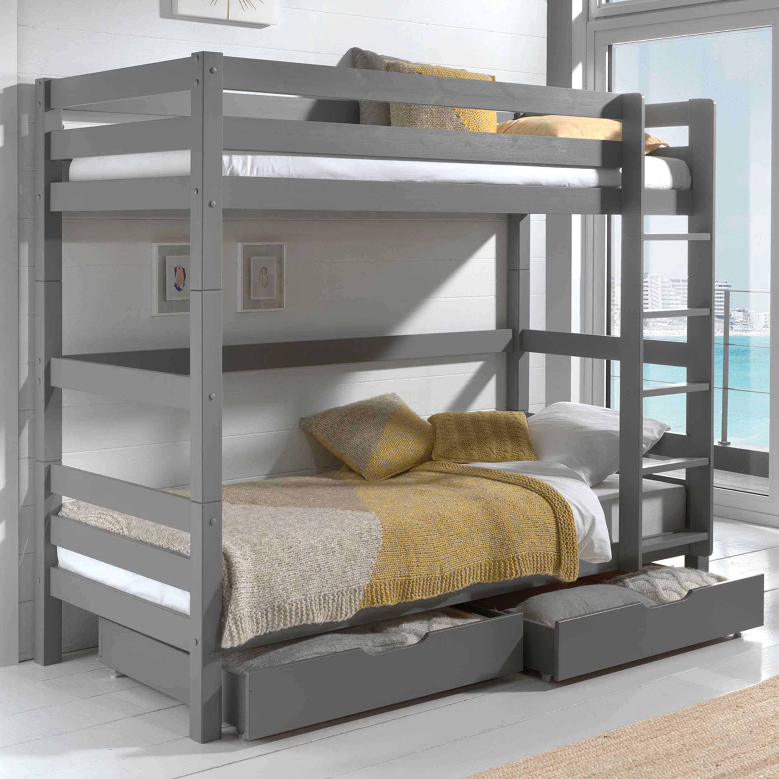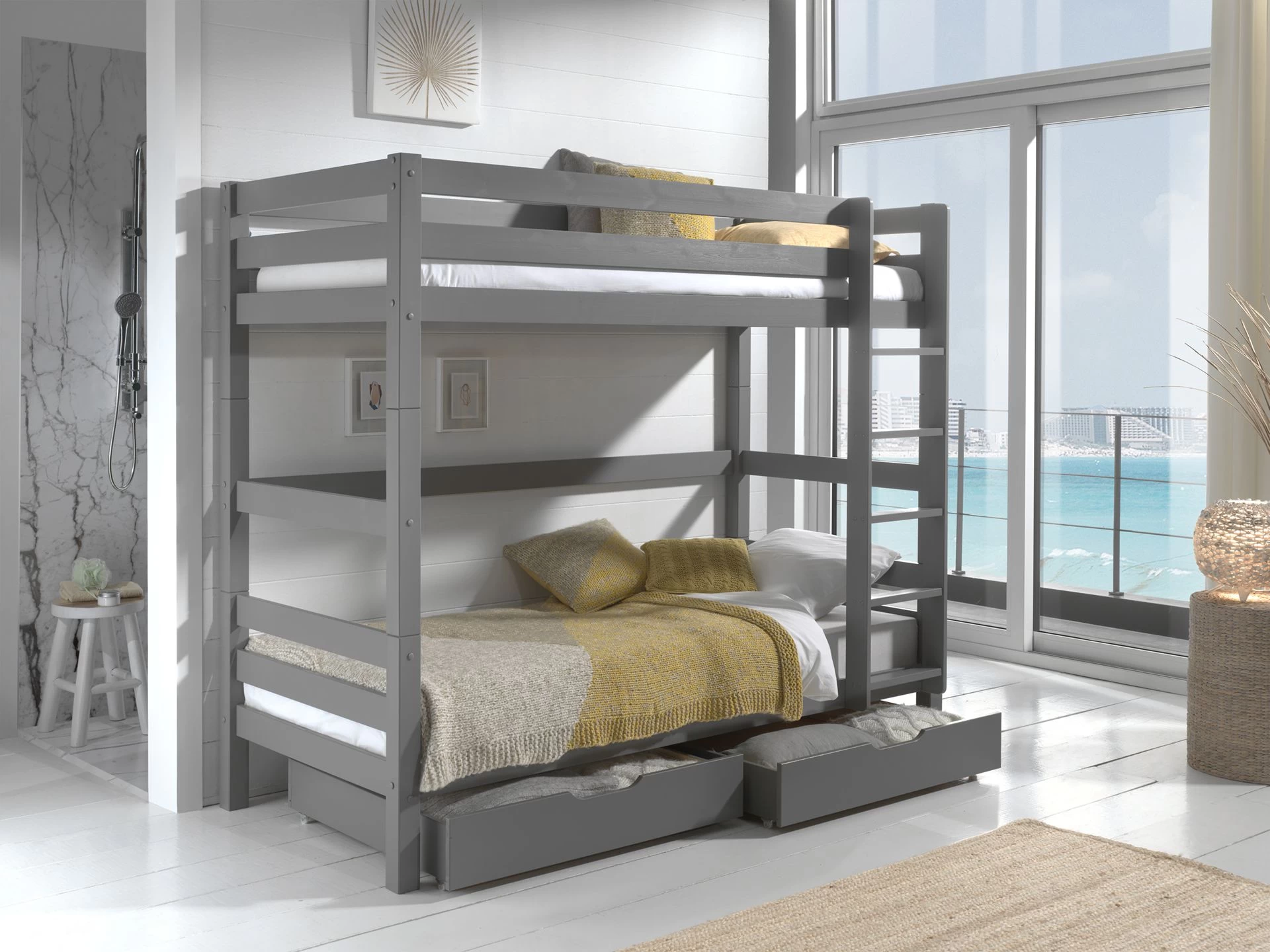 Ce lit superposé est équipé d’une échelle solide. Dans l’avenir, vous pouvez transformer ce lit superposé en 2 lits simples. Les sommiers sont inclus. Grâce aux deux tiroirs inclus, vous pouvez facilement créer un espace de rangement supplémentaire pour le linge de lit ou les vêtements, par exemple.