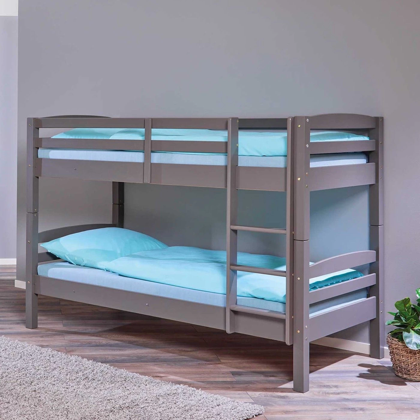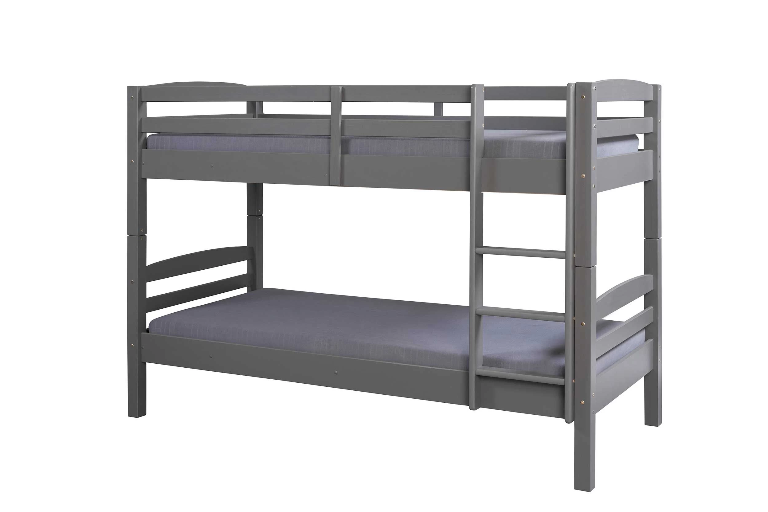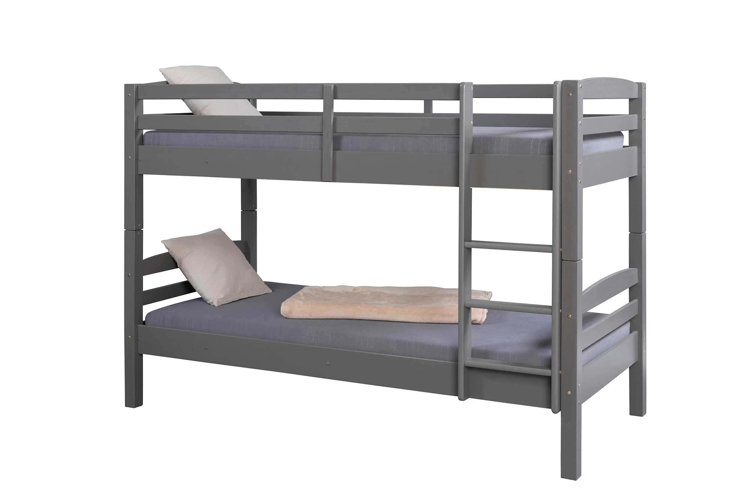 Le lit superposé Lavi est fabriqué en bois massif avec une finition mélaminée de couleur anthracite. Le lit est équipé d’une échelle et d’une barrière sur le lit supérieur pour éviter les chutes. Les lits sont adaptés aux matelas de 90×200 cm. Les matelas ne sont pas inclus, mais les sommiers le sont.