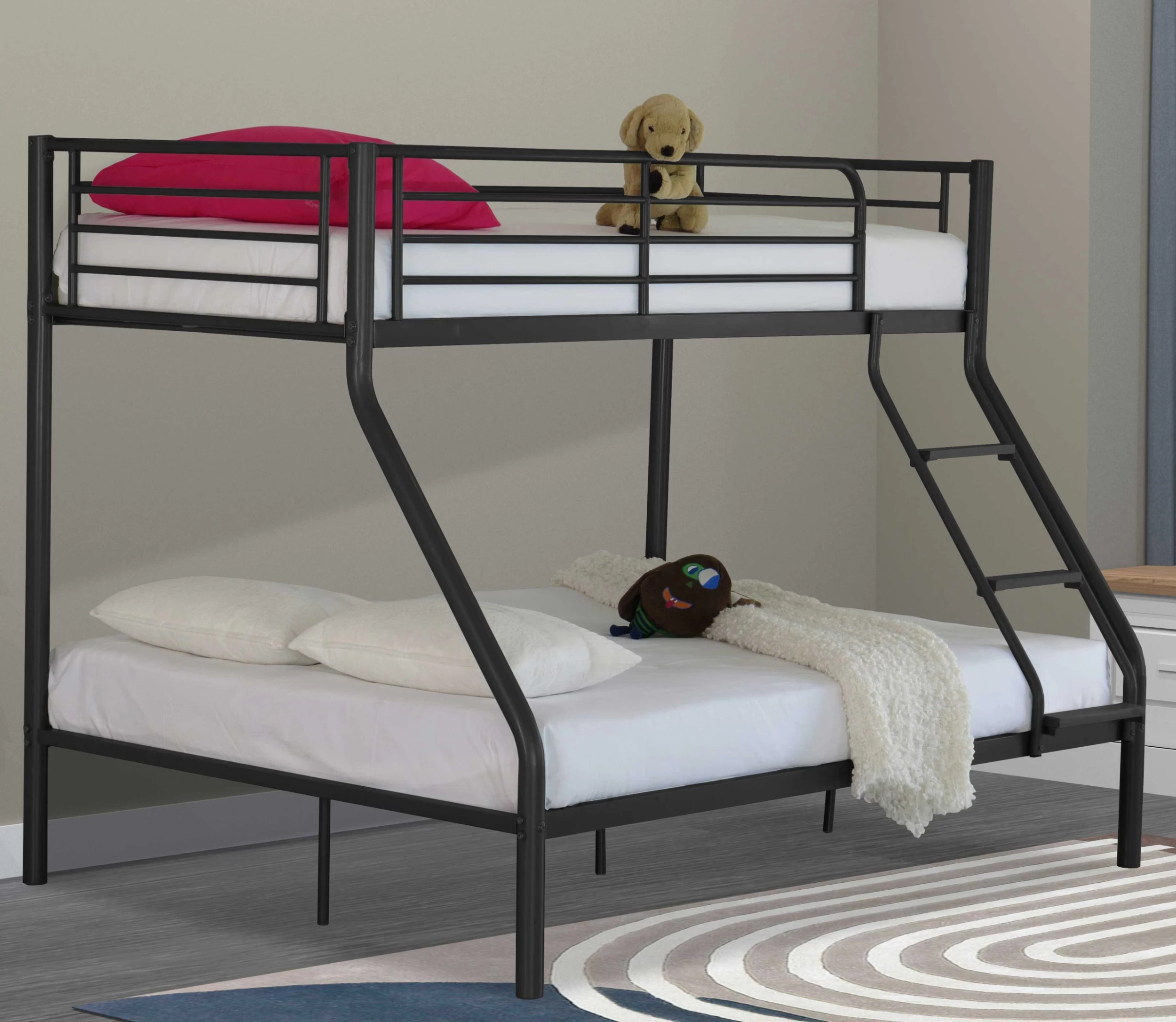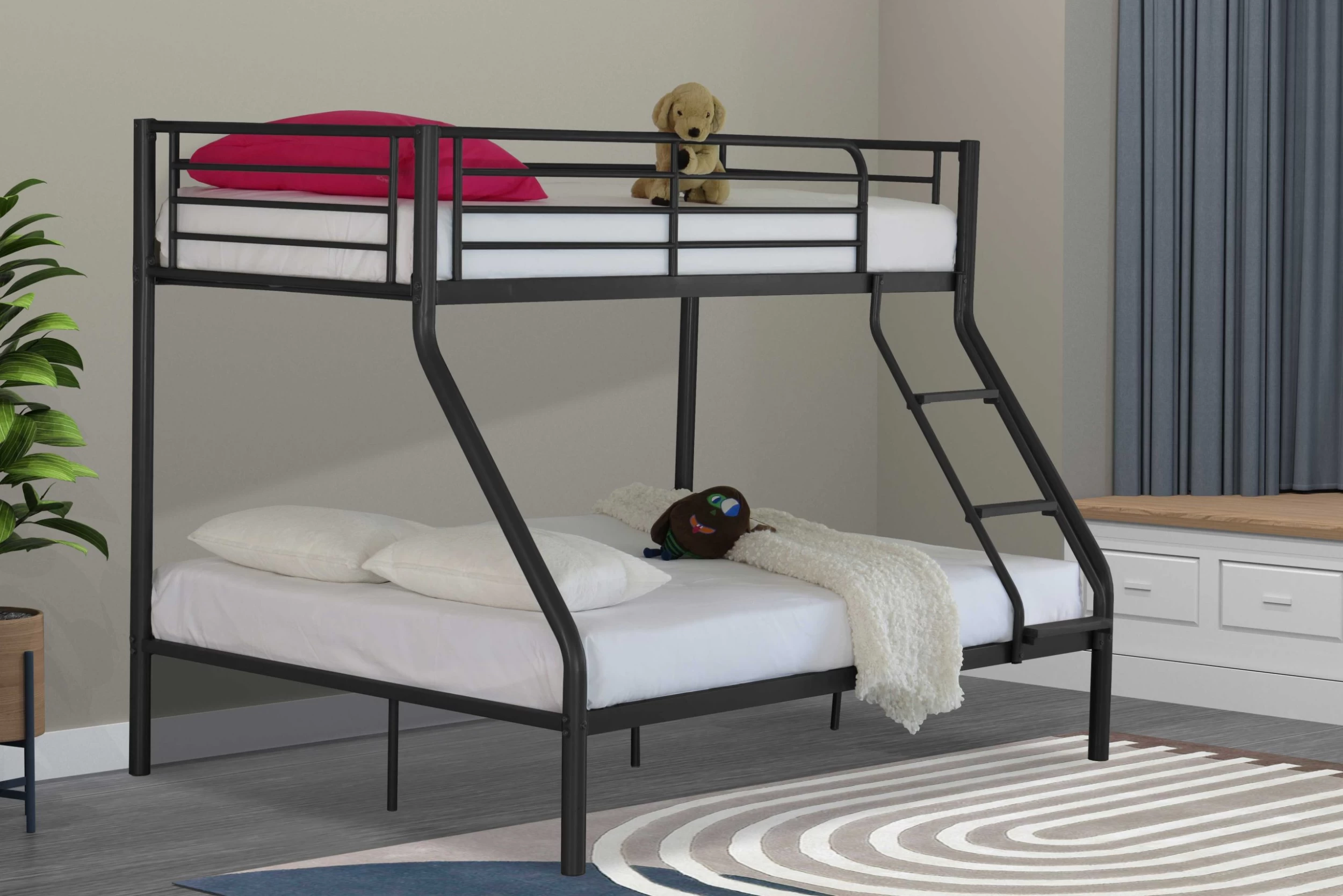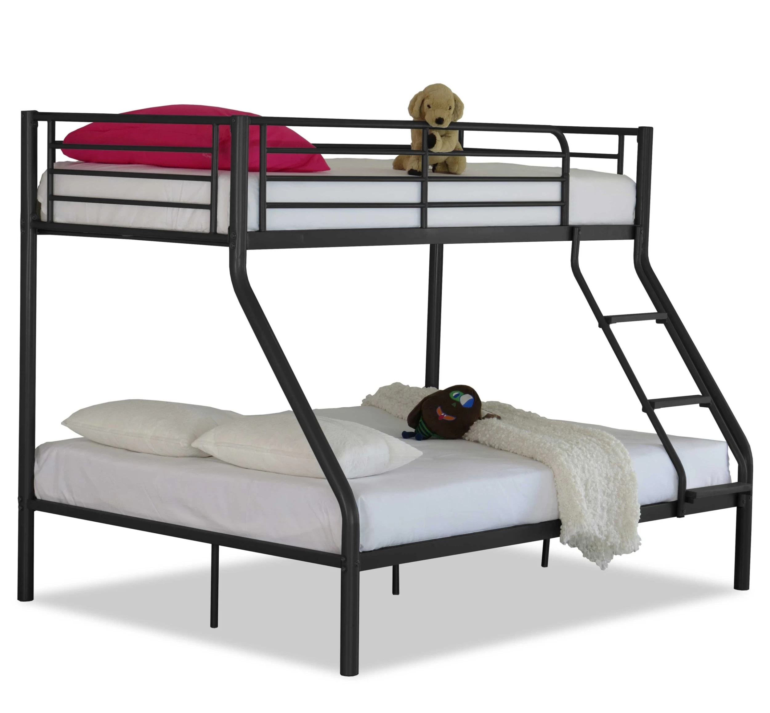 Le lit superposé Nobi noir en métal pour trois personnes apporte une touche industrielle dans votre chambre à coucher ou votre chambre d’enfant. La zone de couchage supérieure, que vous pouvez atteindre en empruntant l’escalier, peut accueillir un matelas de 90×200. Un matelas de 140×200 peut être placé sur le grand plan de couchage du bas. Ceux-ci ne sont pas inclus, mais peuvent être achetés séparément sur notre site web.