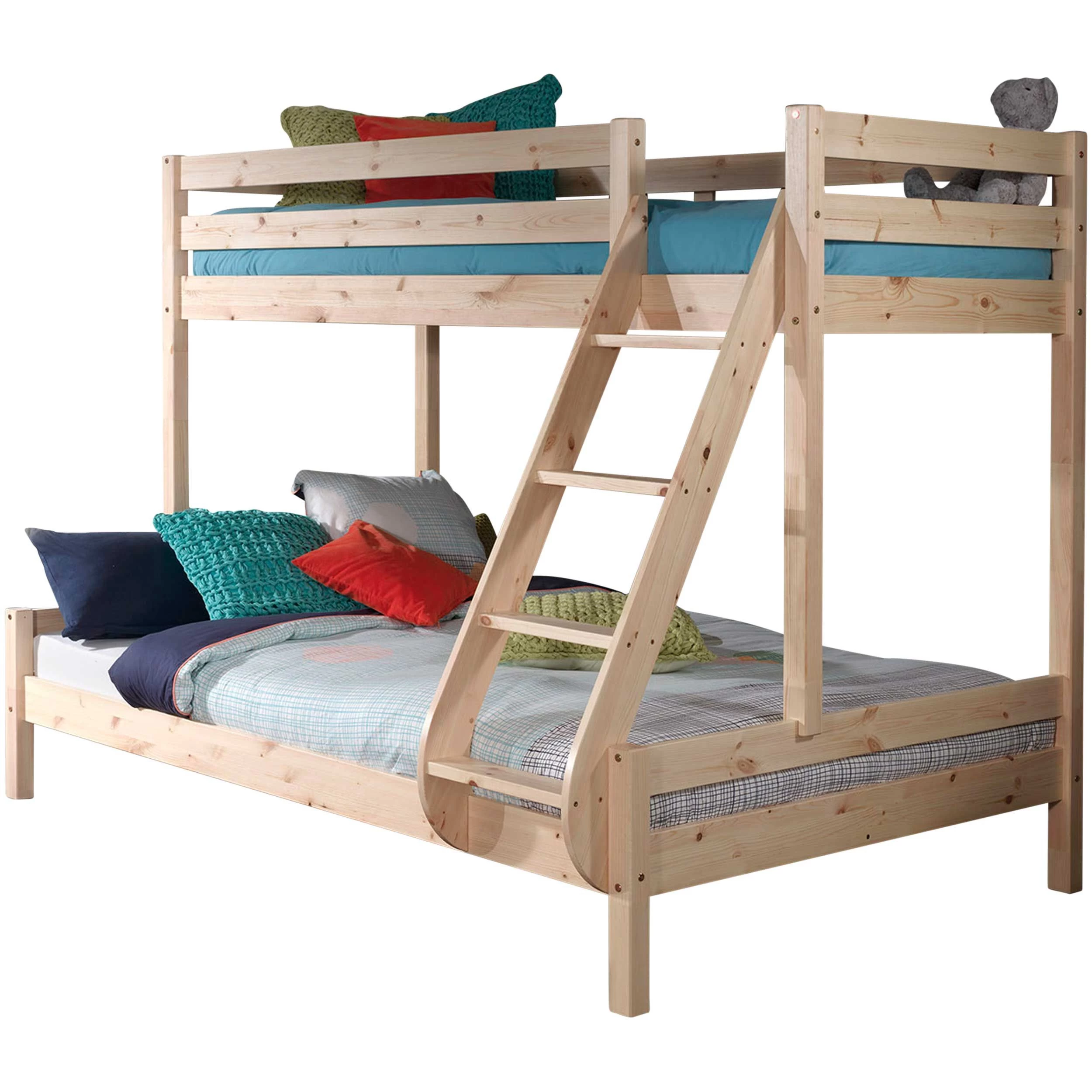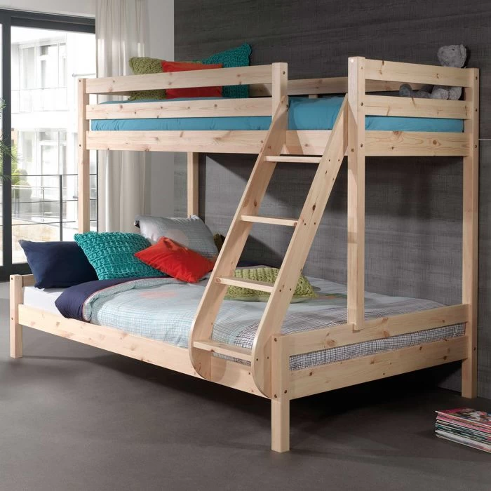 Le lit superposé Triple vous permet de maximiser la capacité de la chambre à coucher ou d’amis. En effet, pas moins de 3 personnes peuvent dormir dans ce lit pratique. Le lit du haut (90 x 200 cm) peut accueillir une personne tandis que 2 personnes peuvent dormir dans le lit du bas (140 x 200 cm).