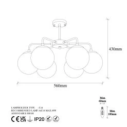Lustre Fulgor : Corps En Métal, Chapeau En Verre, 44x44x40 Cm
