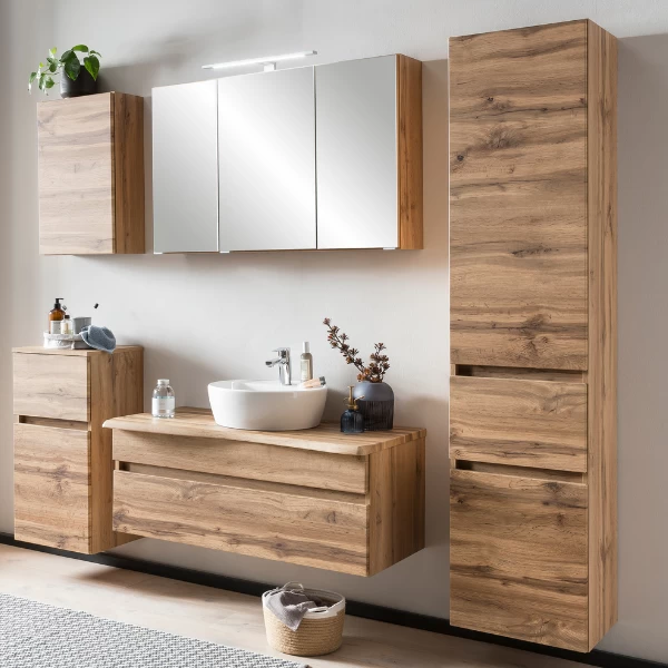Armoire De Toilette Bobbi 60cm Modèle 2 3 Portes & Eclairage LED – Chêne