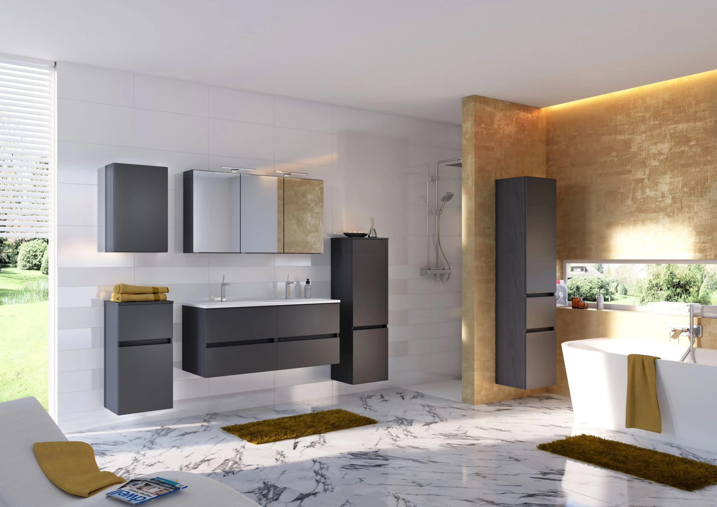 Armoire De Toilette Bobbi 120cm Modèle 2 3 Portes & Eclairage LED – Graphite