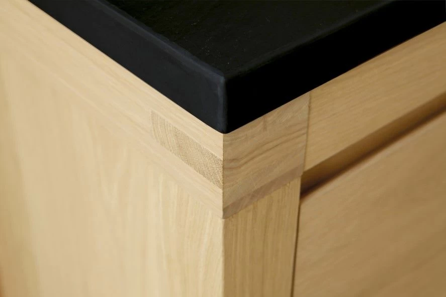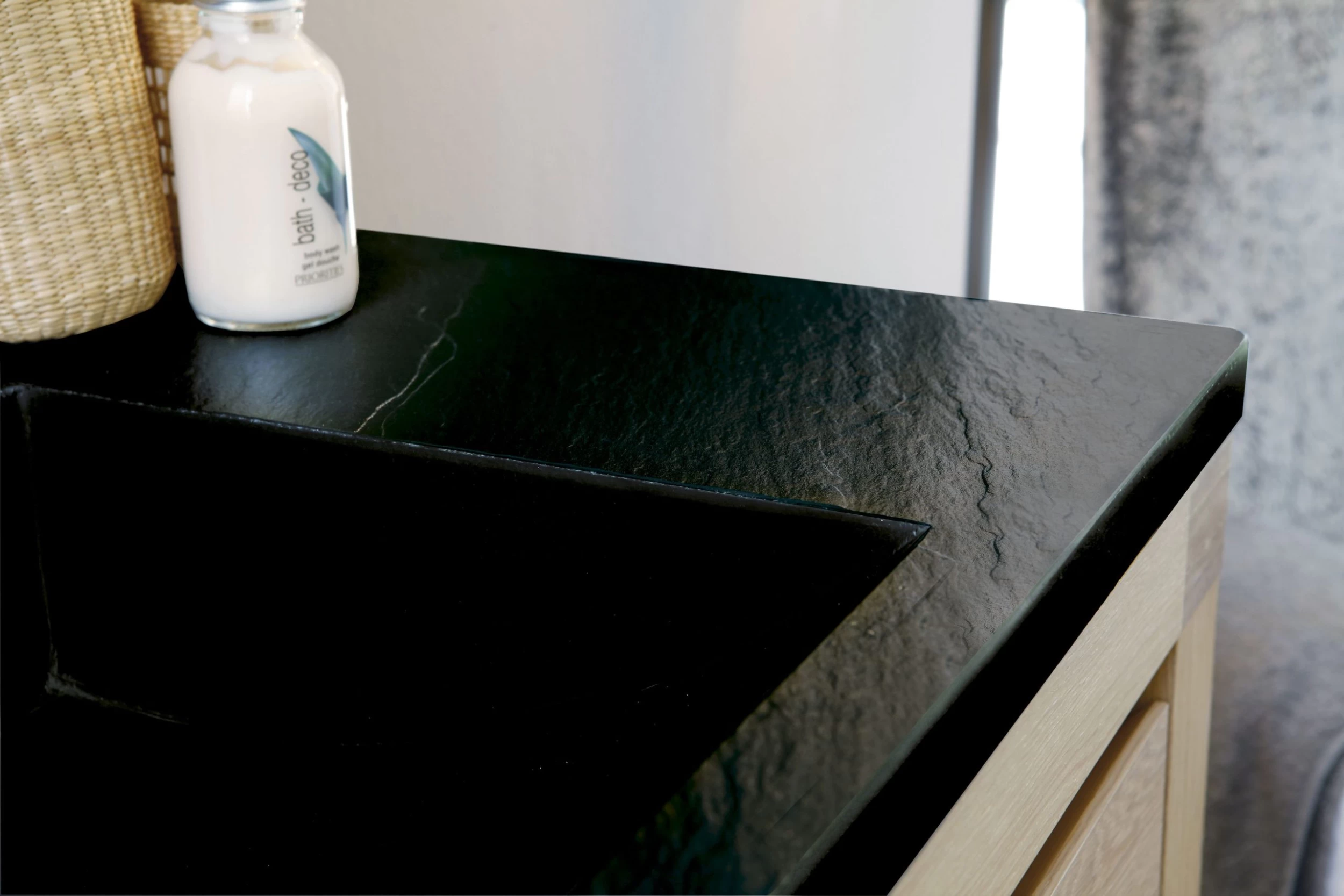 Les meubles de la série Erwin se caractérisent par leur esthétique contemporaine grâce à la combinaison du bois naturel et la résine finition ardoise.
