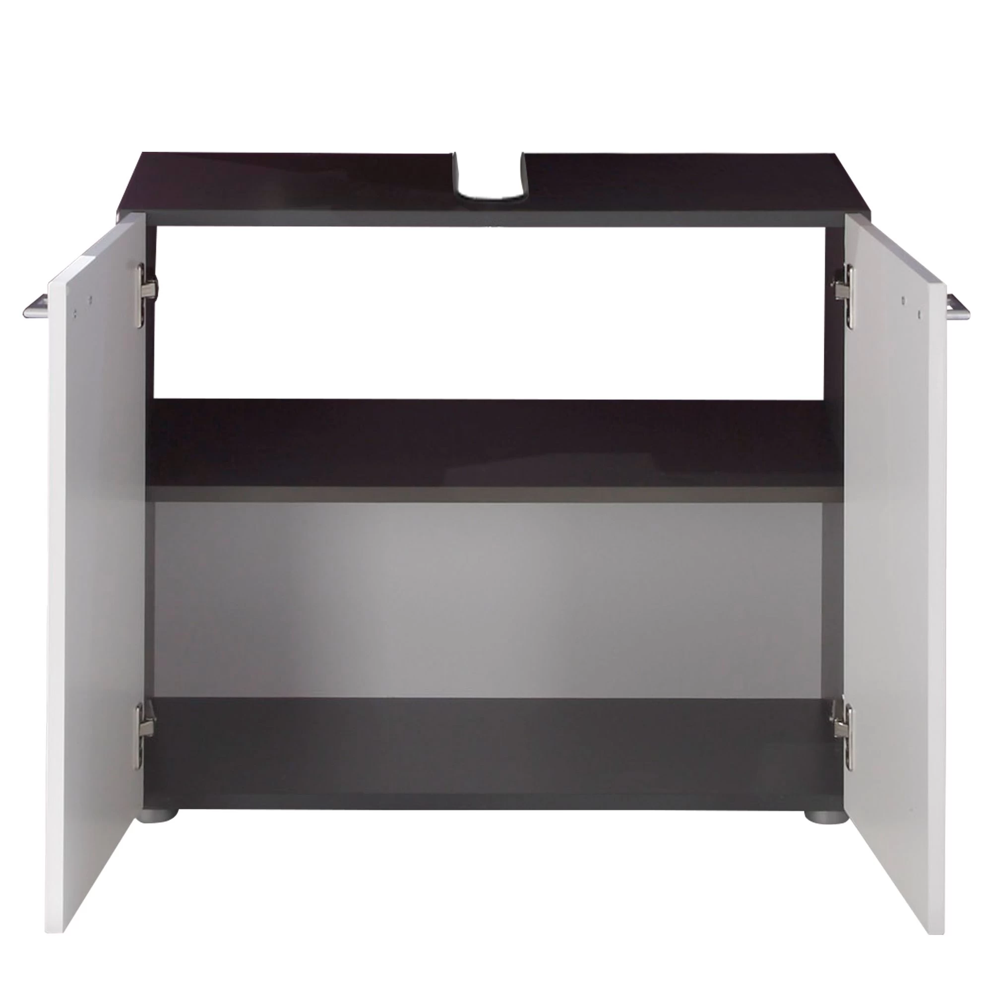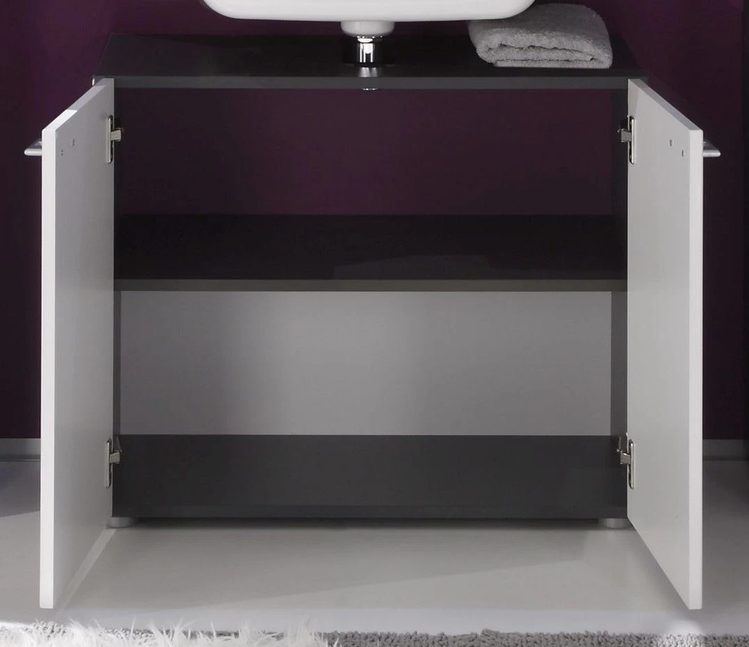 Avec sa carcasse de couleur graphite et sa façade blanche brillante, le meuble lavabo Tetis attire tous les regards. L’allure profonde ajoute une touche d’élégance au design. Les poignées argentées à la finition mate s’intègrent parfaitement à l’esthétique générale.