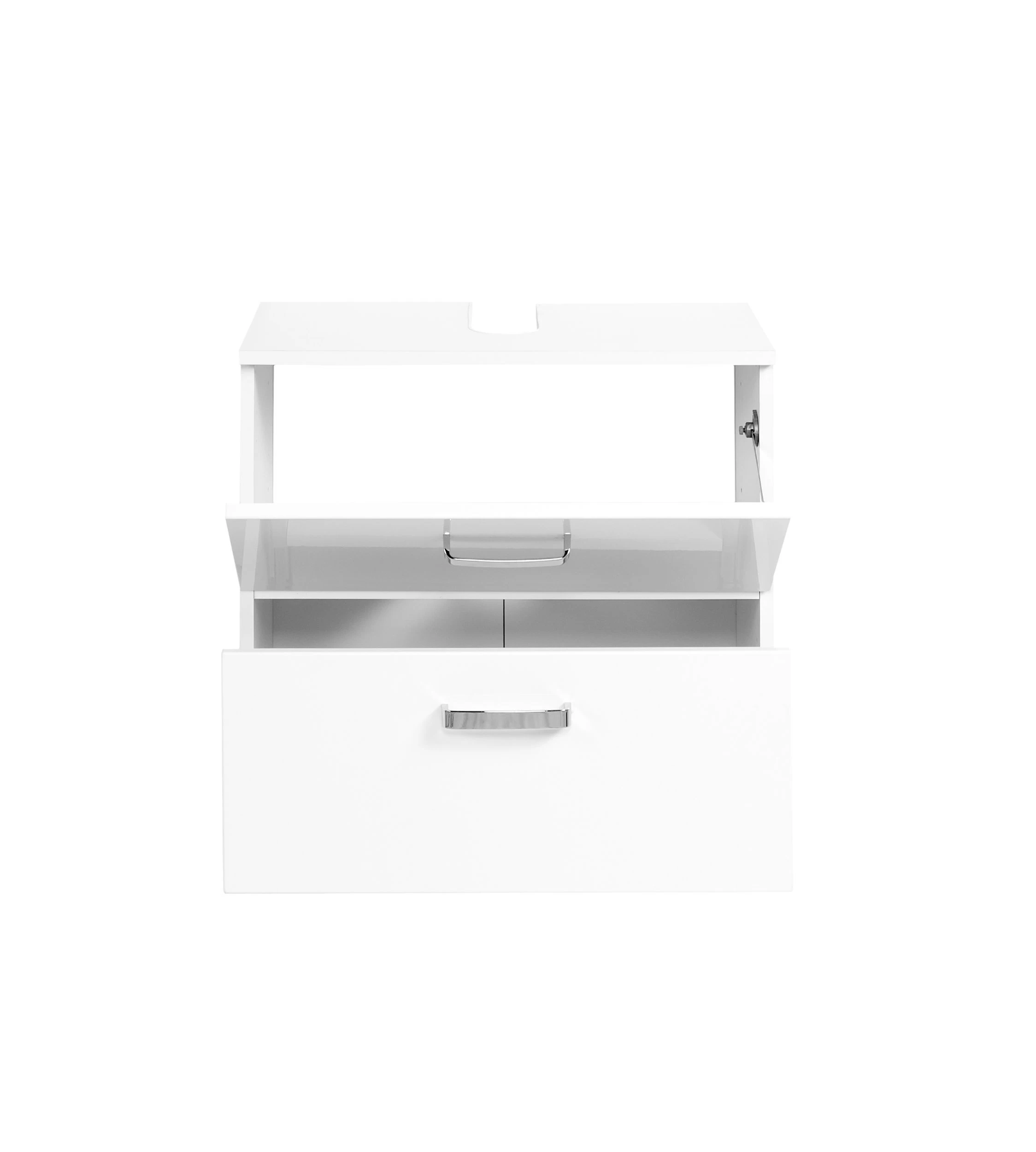 Apportez une touche de fraîcheur à votre salle de bains avec les meubles blancs de la collection Bobbi, qui comprend également ce meuble sous lavabo de 60 cm de large. Il est équipé d’une porte et d’un tiroir à fermeture douce.