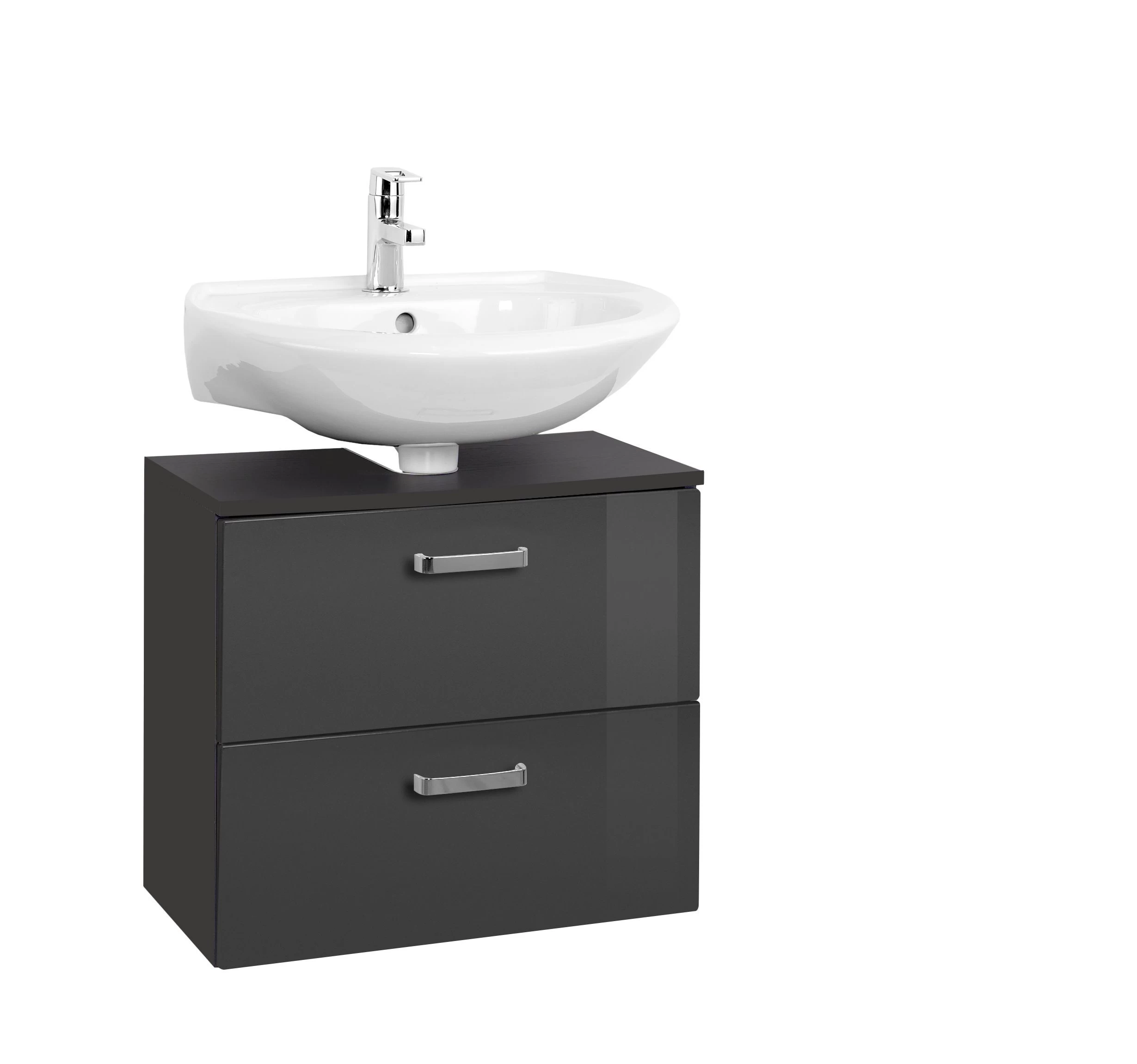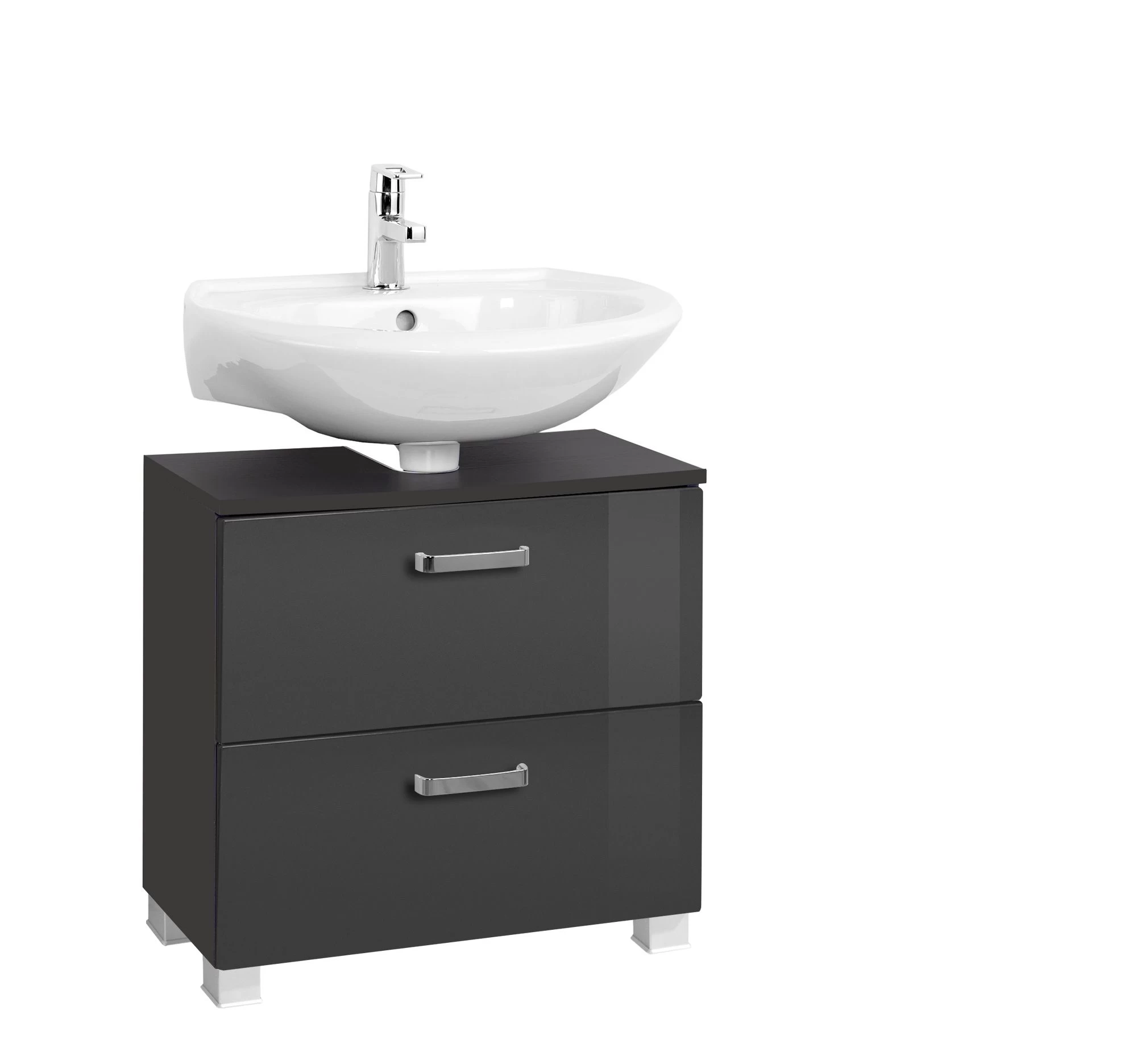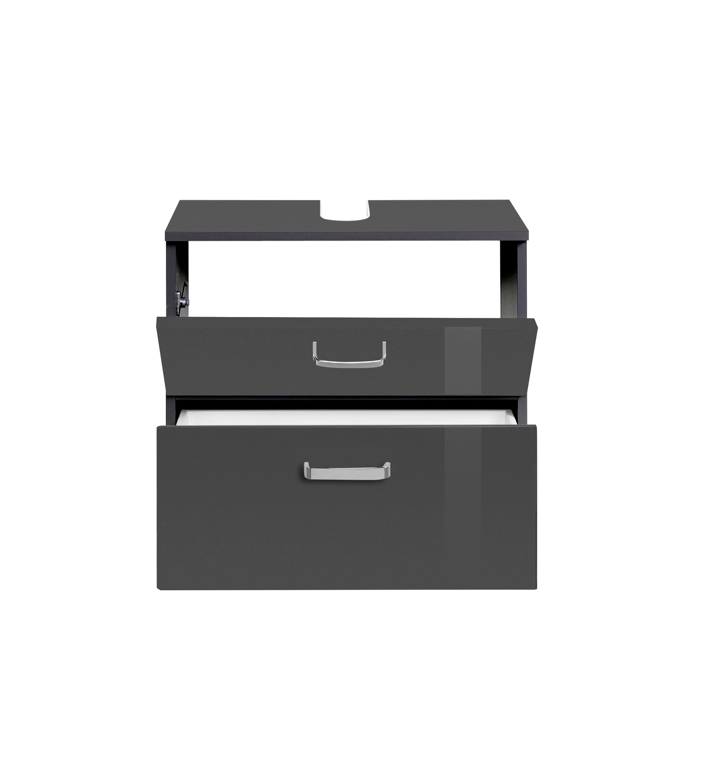 Relookez votre salle de bains avec les meubles de la collection Bobbi, qui comprend également ce meuble sous lavabo de 60 cm de large. Il est équipé d’une porte et d’un tiroir qui sont dotés d’une finition en gris brillant.