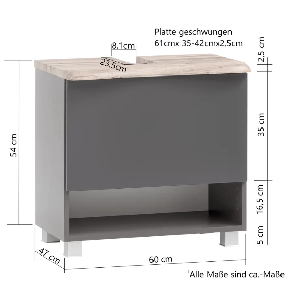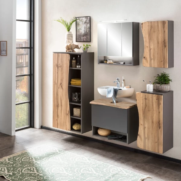 Ensemble Salle De Bains Gene 11 60cm – Gris Graphite/chêne Wotan