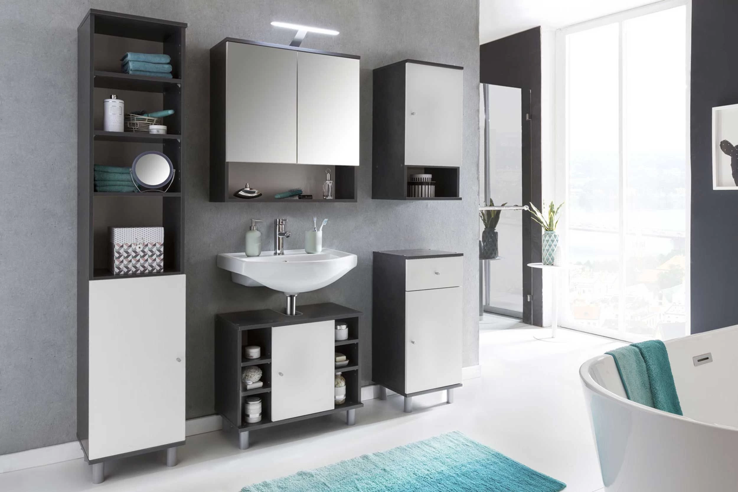 Meuble Sous Lavabo Bobbi 70cm 2 Portes – Graphite/chêne Gris