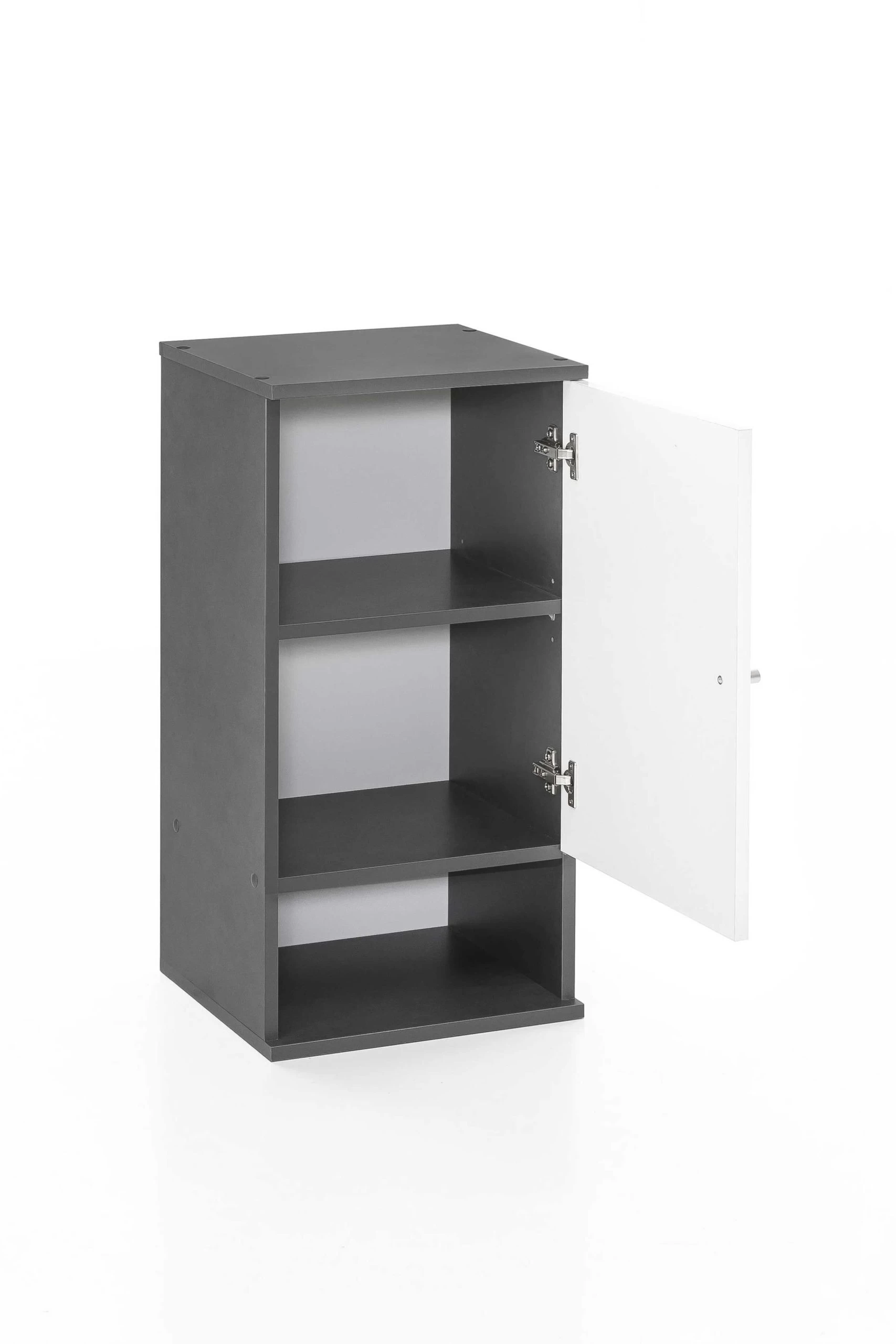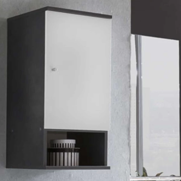 Le meuble haut Benja vous permet de créer plus d’espace de rangement sans perdre des mètres carrés. Il se compose d’un rangement avec porte blanche et d’une niche. Cette armoire suspendue est réalisée en panneaux de particules avec une finition en blanc / gris graphite.