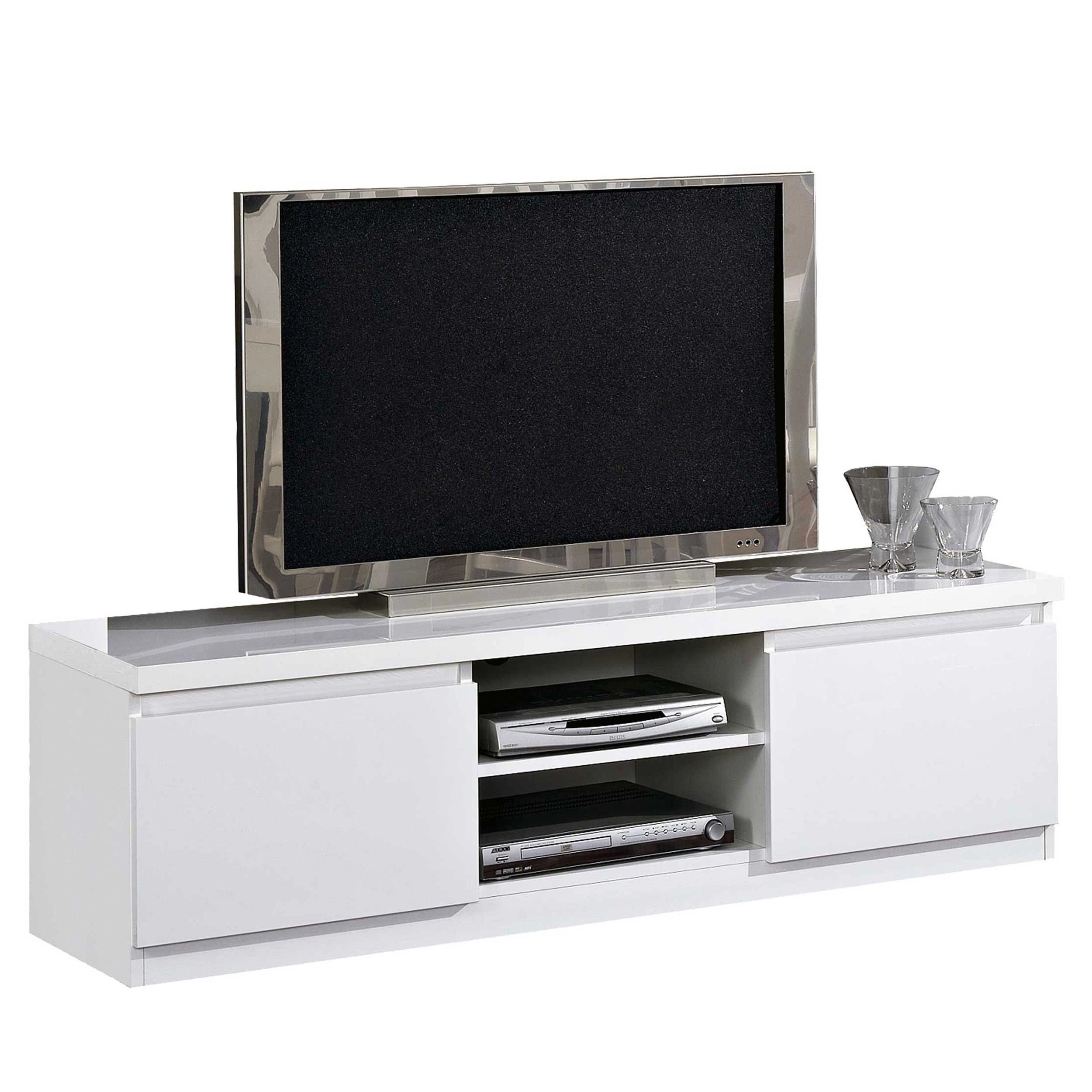 Ce meuble TV avec 2 portes est équipé de 2 niches au milieu: L 47, 6 x P 44,5 x H 15,8 cm. Le plateau du meuble mesure 150 sur 50 cm.