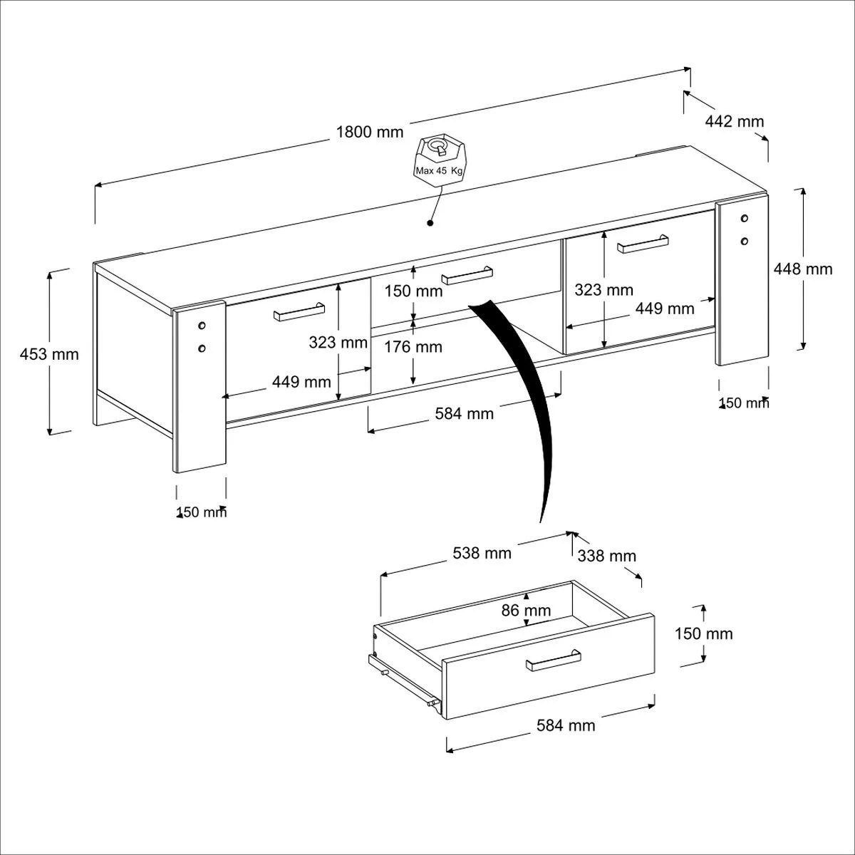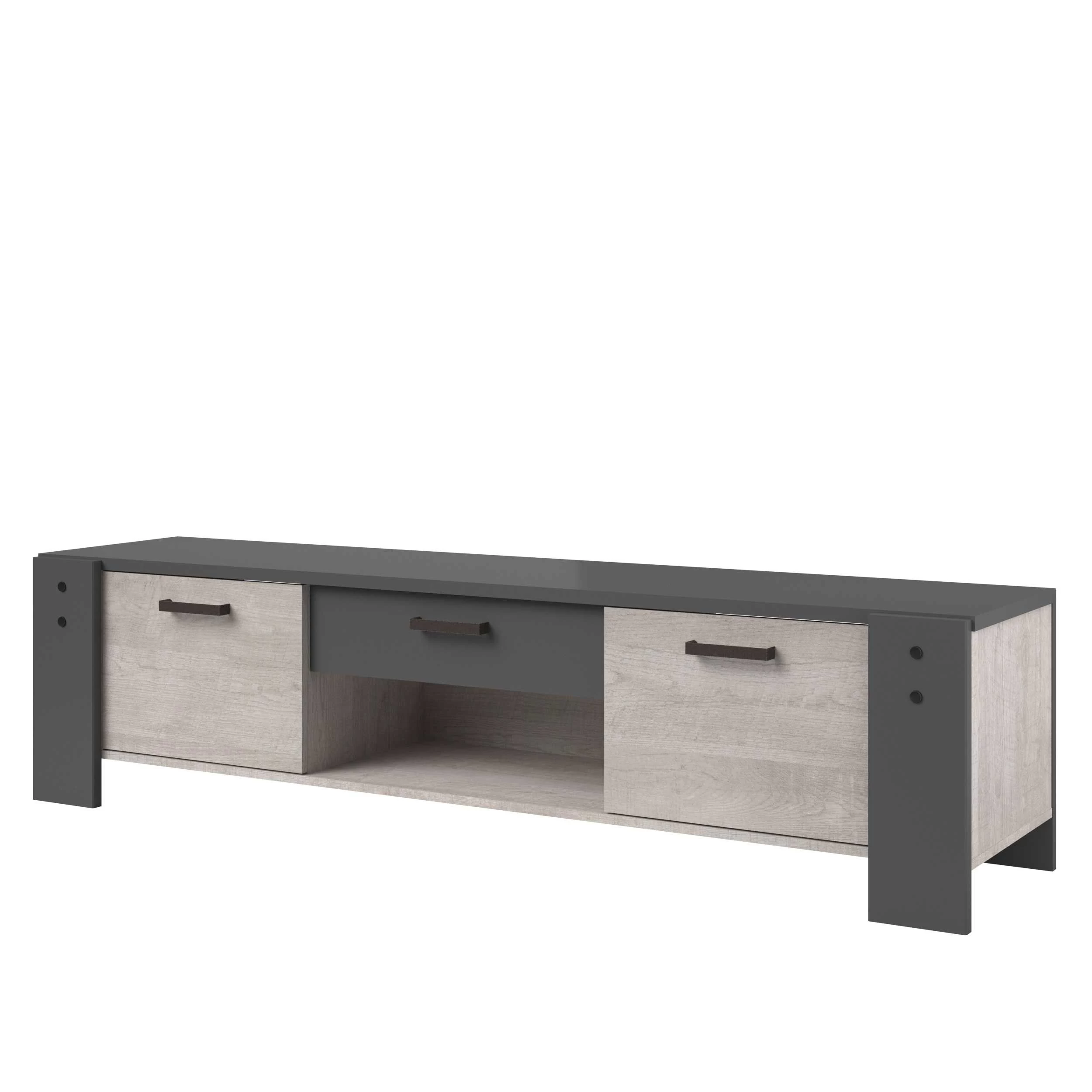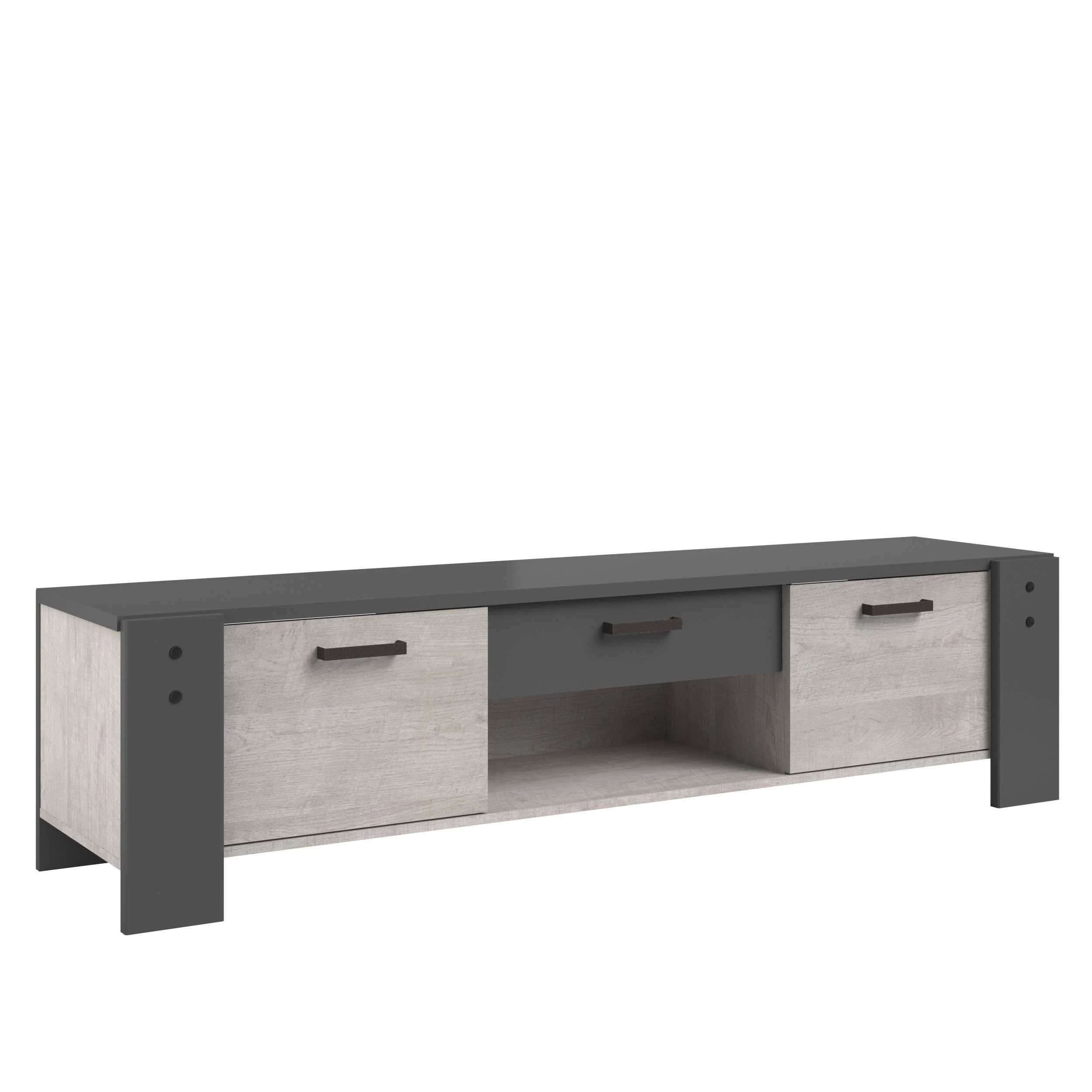 Réalisé en aggloméré de haute qualité et rehaussé de pieds robustes, ce meuble TV Vienna de couleur gris réchauffera sans aucun doute votre salon. Le meuble est équipé de 2 portes, d’un tiroir et d’une niche qui permet d’y intégrer vos appareils électroniques. Jetez également un œil sur les meubles assortis de la collection Vienna et laissez-vous séduire par leur magnifique design.