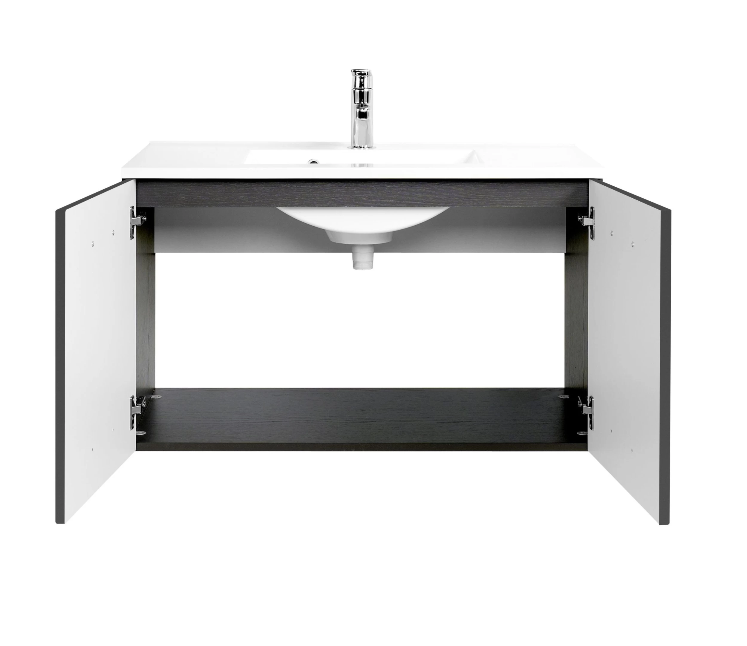 Apportez une touche de fraîcheur à votre salle de bains avec les meubles de la collection Bobbi, qui comprend également ce meuble vasque de 90 cm de large. Il est équipé d’une vasque blanche et de 2 portes qui sont dotées d’une finition en gris brillant.