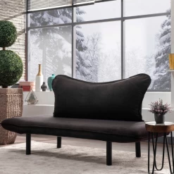 Canapé-lit Confortable à Deux Places | Structure 100 % Métal | Tissu 100 % Microfibre | Facile à Nettoyer | Marron