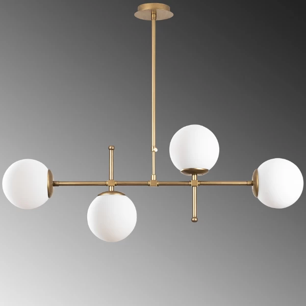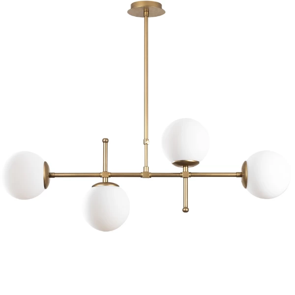 Le plafonnier Muriël attire immédiatement l’attention avec ses abat-jours en verre ludiques. L’or vintage du cadre ajoute une touche luxueuse à votre intérieur. Avec son design ludique et élégant, cette lampe deviendra certainement un véritable accroche-regard dans votre maison!