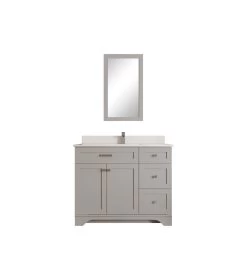 Jussara Ensemble De Salle De Bain : 2 Pièces | Bois Massif | Comptoir En Quartz | Gris