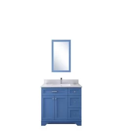 Jussara” Ensemble De Meubles De Salle De Bain | 2 Pièces | 100% Bois Massif | Bleu Foncé