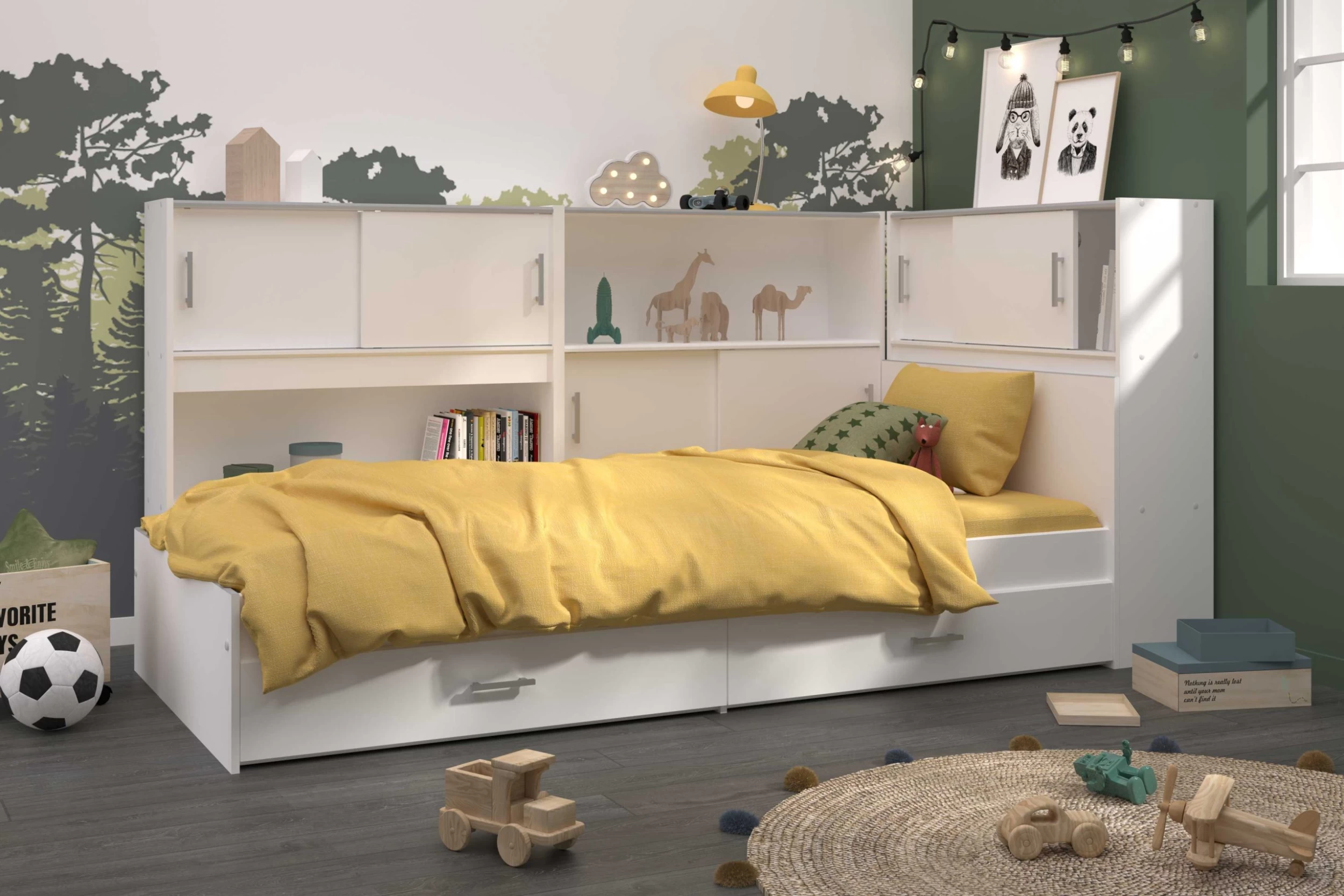Pourquoi ne pas acheter ce rangement qui s’installe autour du lit blanc Snap, créant ainsi beaucoup plus d’espace. Une solution idéale pour les chambres enfant plus petites. Vous pouvez entourer tout le lit en achetant trois exemplaires de cet article.