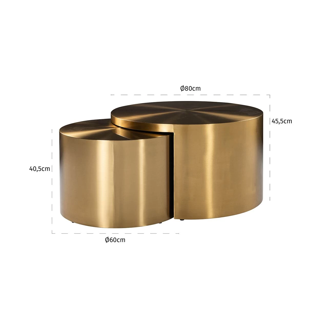 Cet ensemble de deux tables basses Ridge est synonyme de luxe et de style. Il se trouve que ce sont les valeurs que défend Richmond. Les deux tables basses sont fabriquées en acier inoxydable, qui a été laqué en couleur or. Elles se glissent très facilement l’une dans l’autre, mais les deux tables peuvent aussi parfaitement faire la différence à elles seules.
