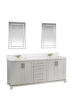 Ensemble De Meubles De Salle De Bains Jussara – Comptoir En Quartz Blanc – Miroir Flotal