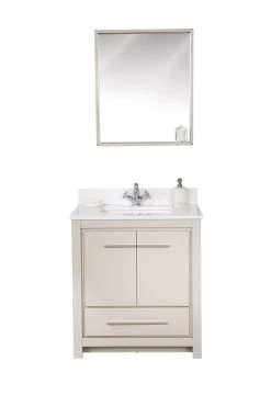 Jussara Ensemble De Meubles De Salle De Bain – Beige | 2 Pièces, Bois Massif, Comptoir En Quartz