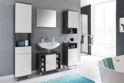Armoire De Toilette Florent Courbée 100cm 3 Portes & Barre LED – Graphite