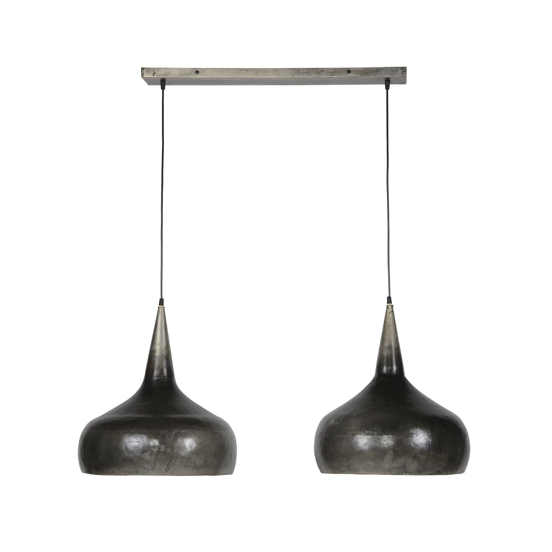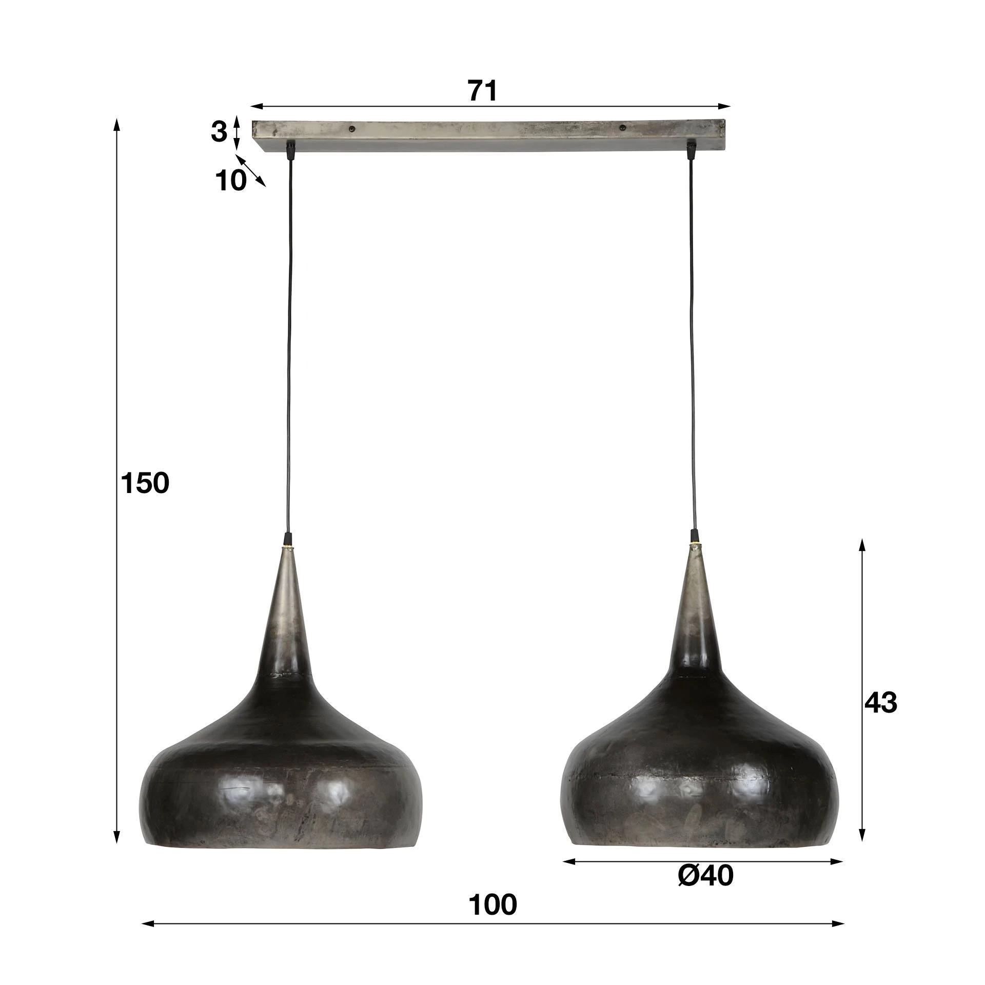 La suspension Mich compte 2 abat-jour sous forme d’un entonnoir. Ils sont réalisés en métal à finition argentée. La surface des abat-jour est plutôt inégal, ce qui apporte un look industriel à la suspension. La fixation aussi (L 71 x l 10 x H 3 cm) est dotée d’une finition argentée.