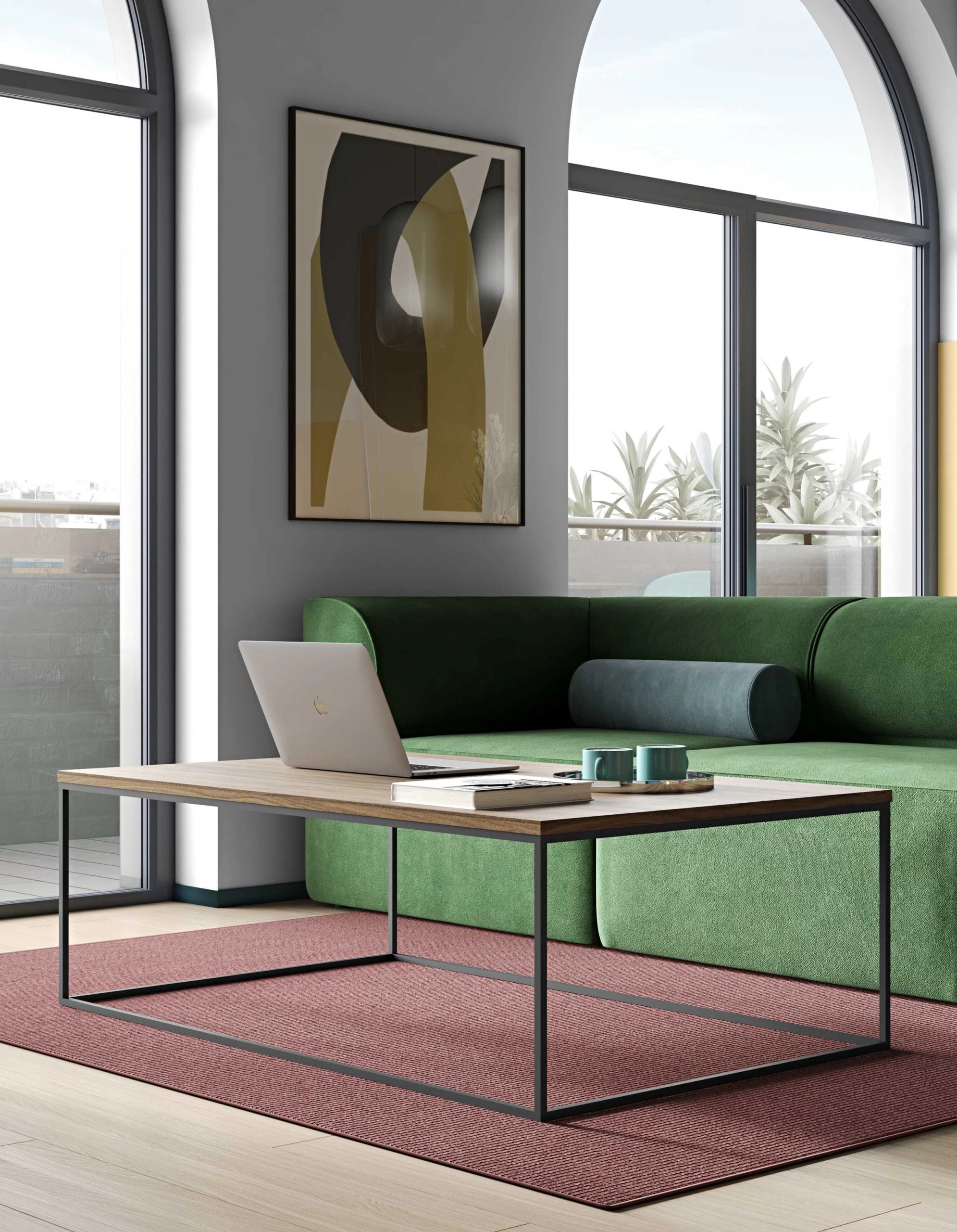 Cette table basse de la collection Gleam donnera du style à n’importe quel intérieur. Le plateau est fait en aggloméré avec finition en placage de noyer, le piètement noir est réalisé en acier. Une combinaison exceptionnelle qui s’introduira aisément dans tous les styles de déco.