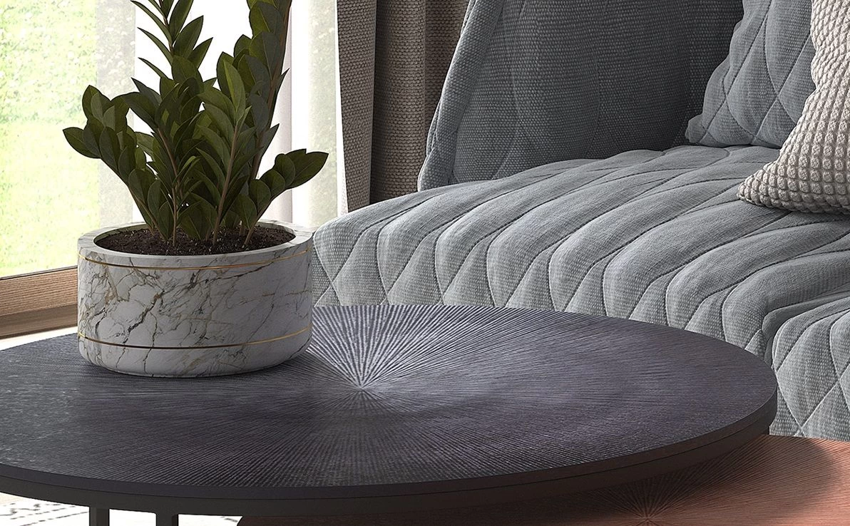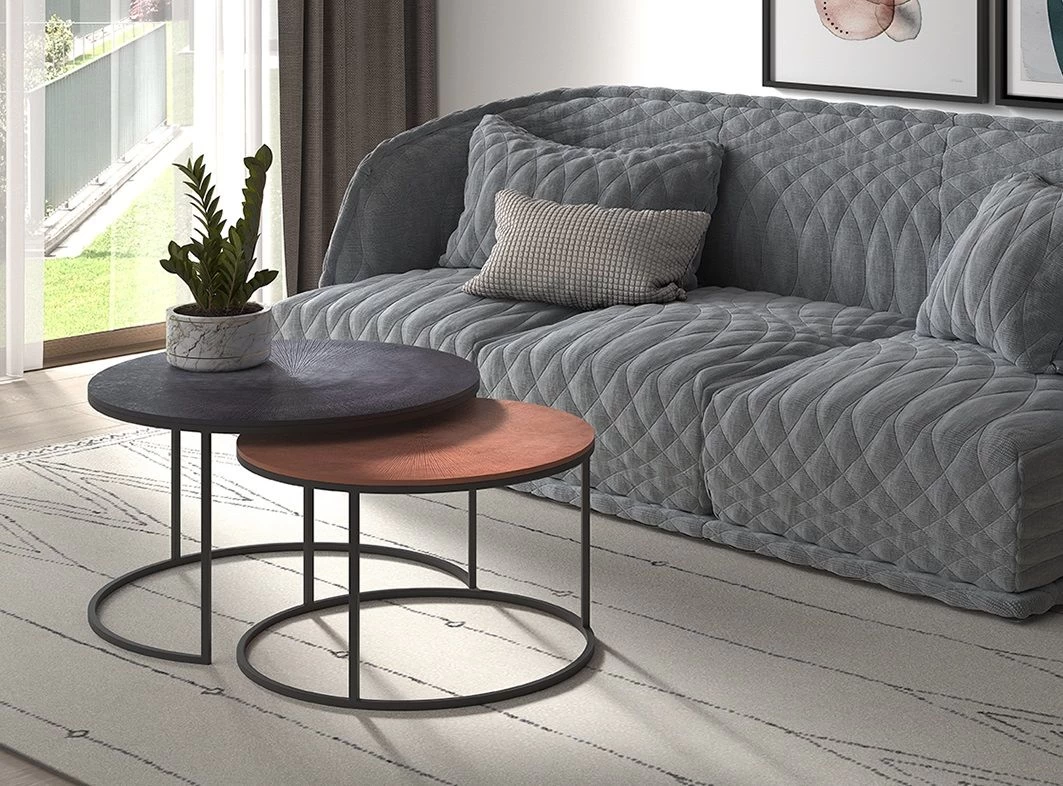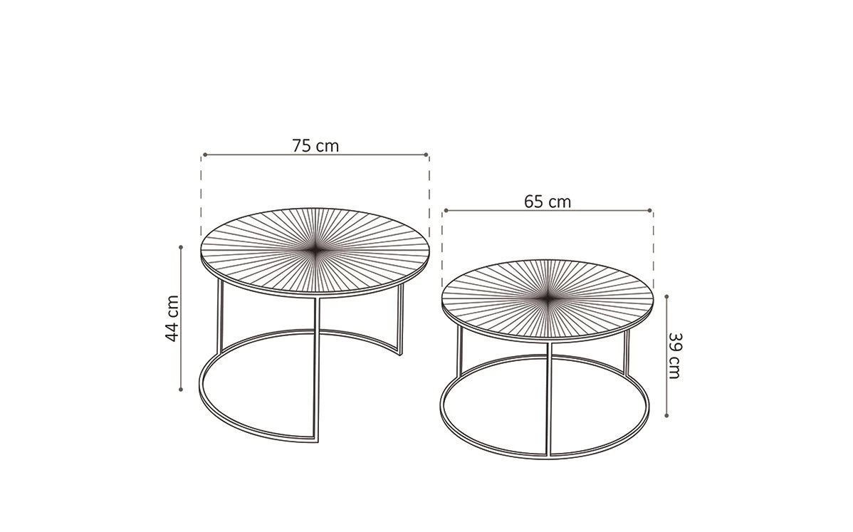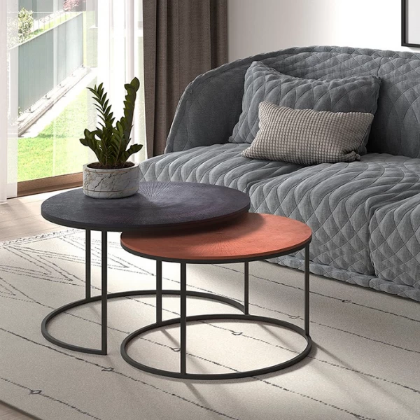 Cet ensemble de 2 tables basses rondes quelque peu abstraites donnera à coup sûr une touche particulière à votre salon. Les tables sont fabriquées en métal de couleur noire et bronze, et peuvent être utilisées seules ou ensemble.