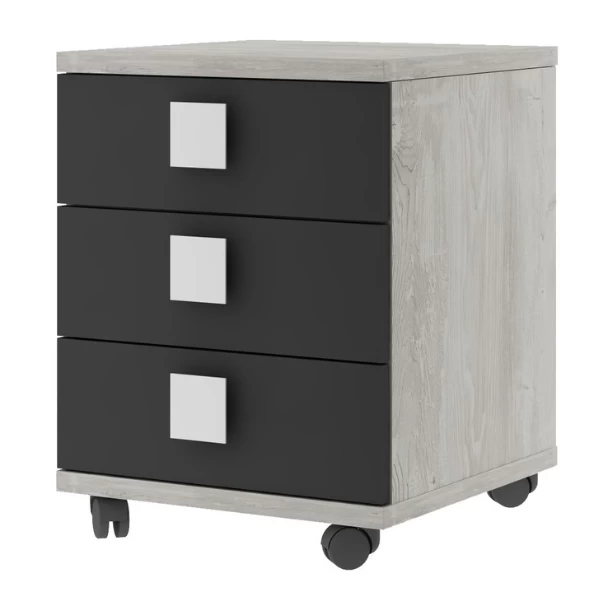 Une chambre à coucher n’est pas complète sans une table de chevet assortie, c’est pourquoi cette table de chevet est un véritable must-have. Combinée avec un lit de la collection Bo9 ou Bo12 et un bureau de la collection Bo0, un ensemble élégant est créé en un rien de temps. Ce meuble ne comporte pas moins de 3 tiroirs, de sorte que vous avez toujours suffisamment de place pour ranger vos stylos et papiers, livres, jouets et bibelots. Sur le dessus du meuble, il y a de la place pour les peluches ou une lampe de chevet. Cette table de chevet a des accents anthracites et dispose de roulettes et de poignées carrées. Elle est fabriquée en panneaux de particules et est finie avec de la mélamine de haute qualité. La table de chevet Bo0 est également disponible sur notre site dans d’autres couleurs et avec d’autres poignées. Ne manquez pas non plus de jeter un coup d’œil dans la catégorie décoration. Vous y trouverez toutes sortes d’objets (tapis, stickers muraux, coussins…) pour rendre votre chambre encore plus chaleureuse.