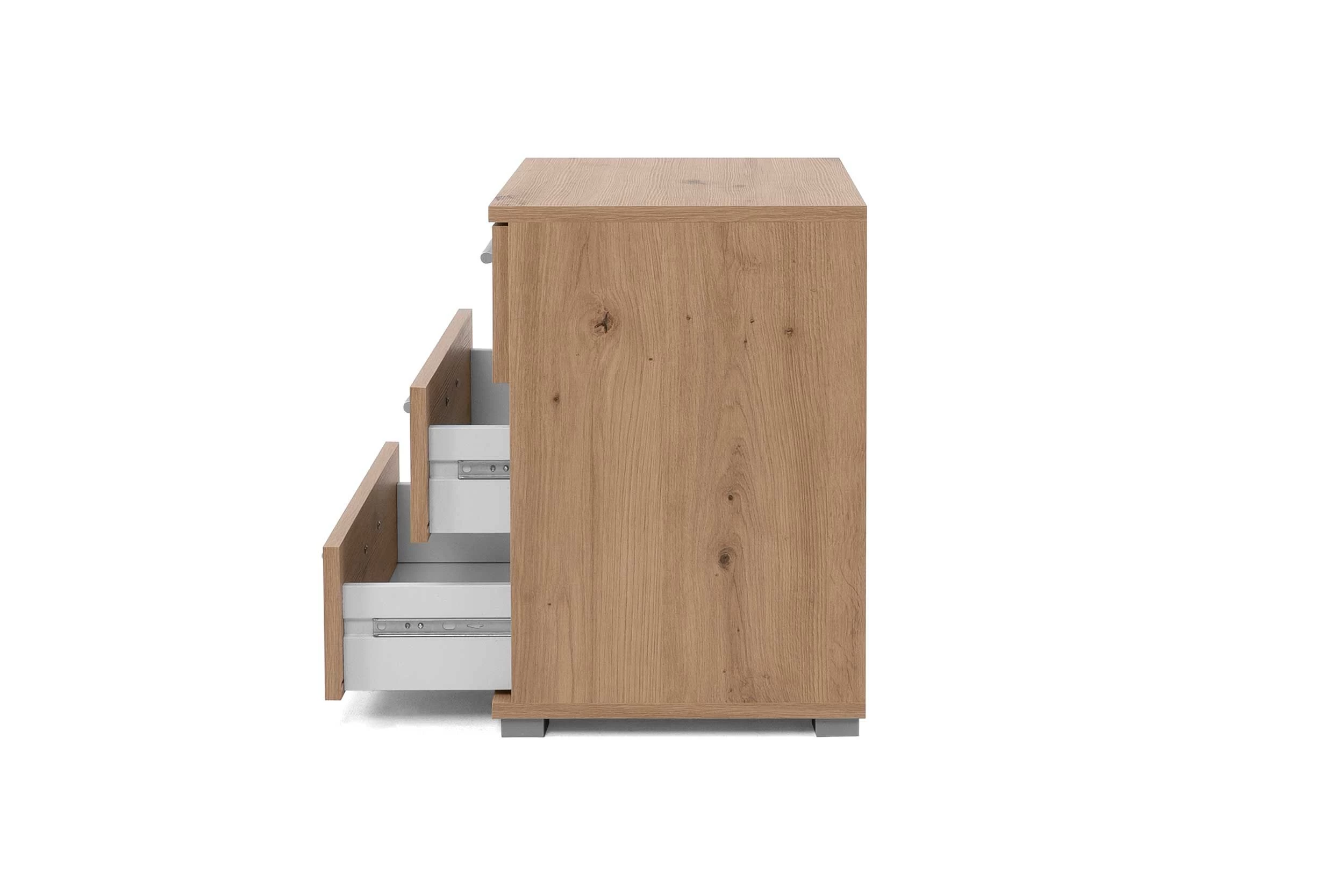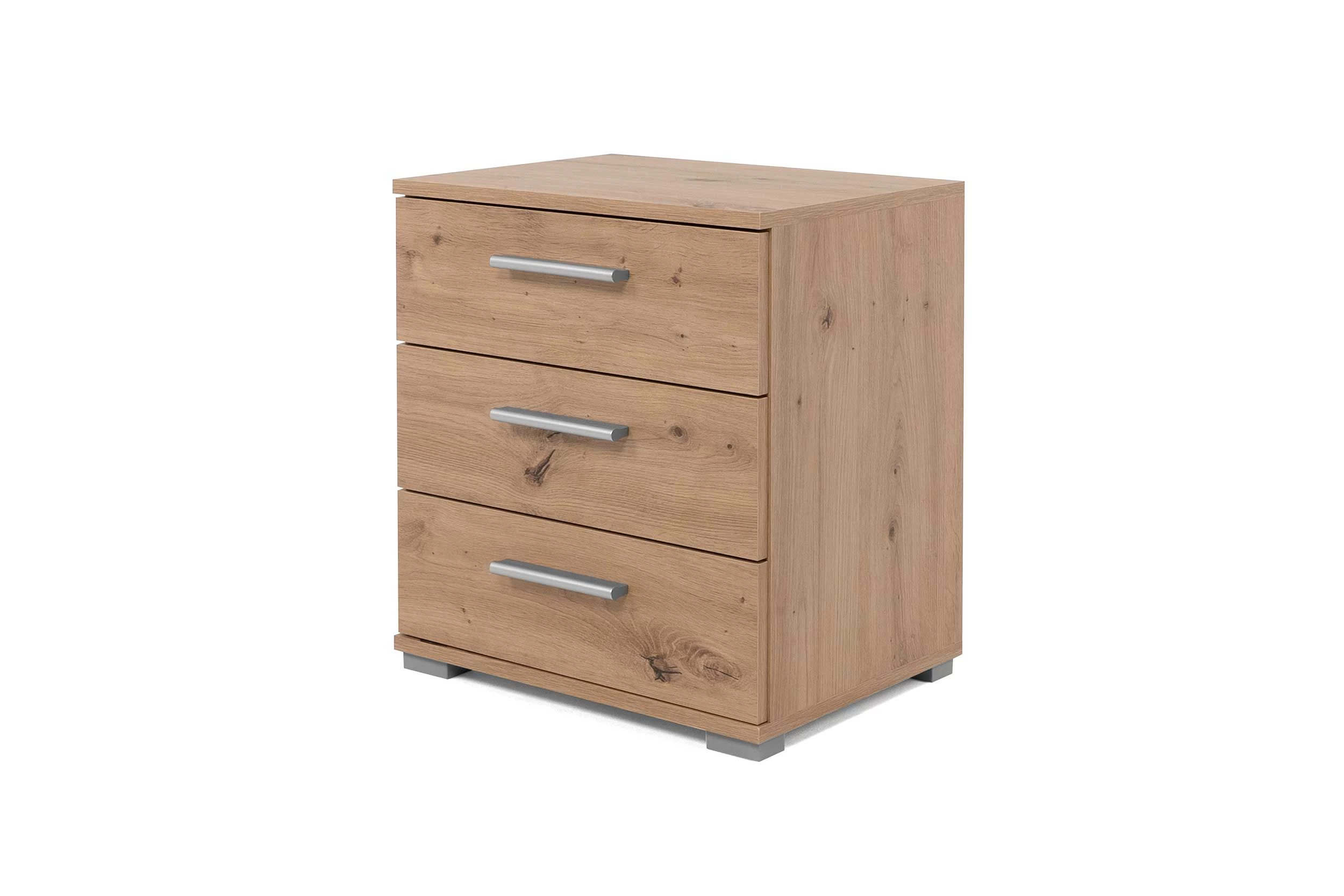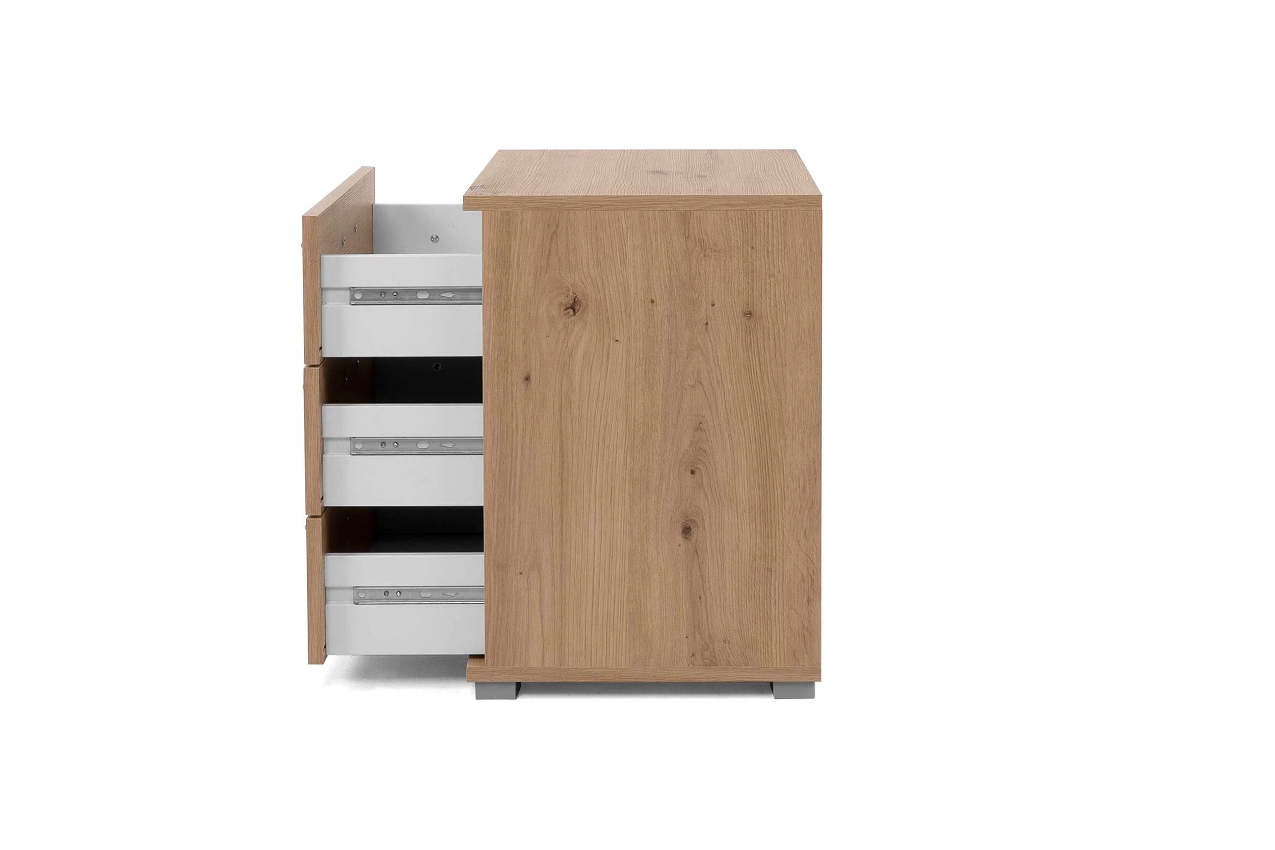 Cette table de chevet au design moderne compte 3 tiroirs où vous pouvez ranger vos pyjamas, livres et d’autres trucs. La table de chevet Elora est réalisée en panneaux de particules avec finition chêne artisan. Elle est également offerte dans d’autres couleurs et avec 2 tiroirs.