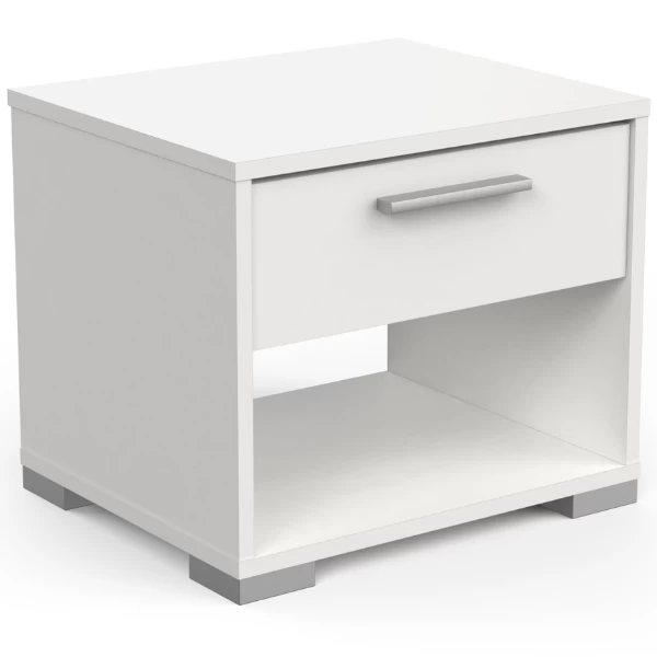 Table de chevet Maura trouvera facilement sa place dans la plupart des chambres à coucher grâce à sa couleur blanc mat neutre et sa conception intemporelle. Dans le tiroir il y de l’espace pour des mouchoirs, une montre-bracelet et d’autres petits objets et dans la niche vous pouvez stocker des livres. Combinez avec le lit simple Maura, l’armoire Maura et le chiffonnier Maura et vous avez une belle chambre d’adolescent