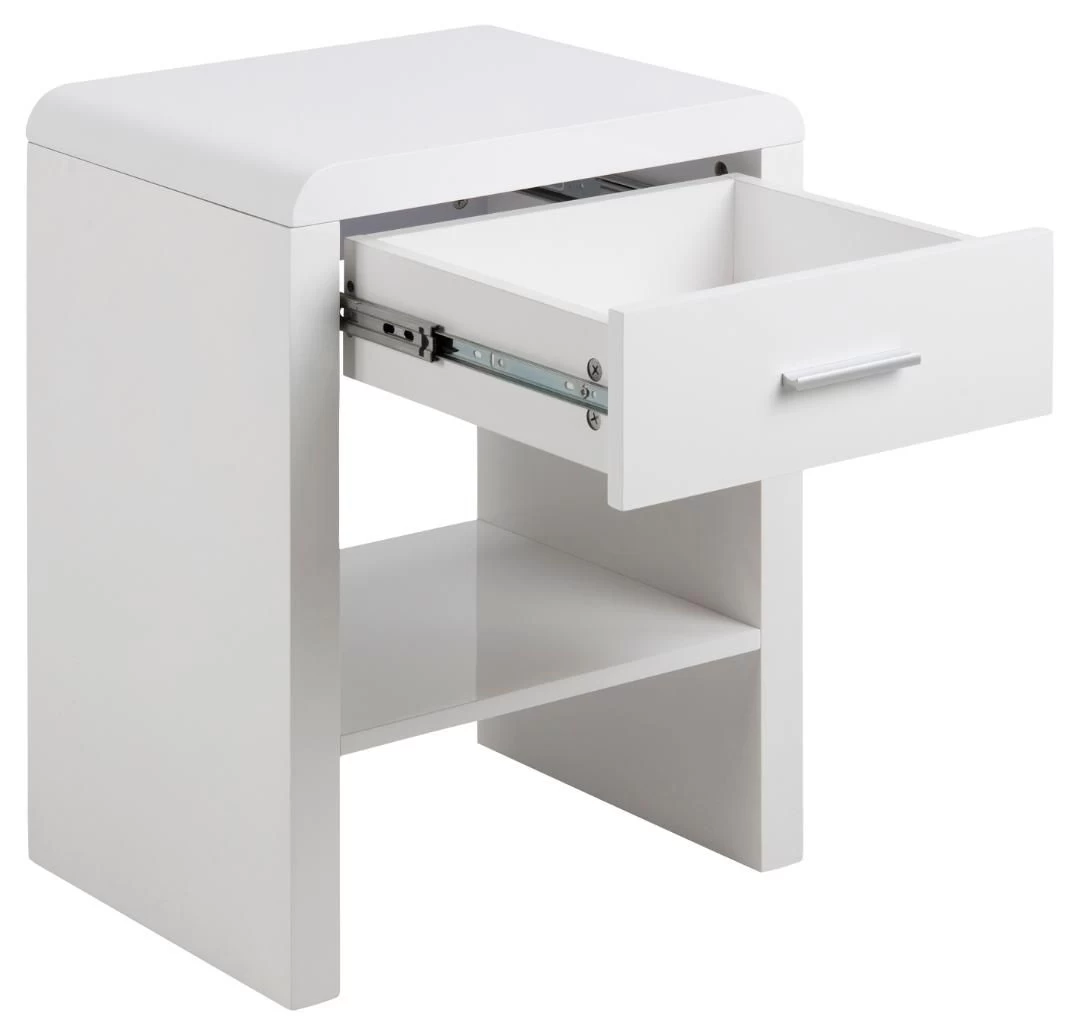 La table de chevet Sova présente un design intemporel et élégant. Avec une longueur de 45 cm et une largeur de 35 cm, cette table de chevet s’adapte à toutes les chambres. La surface brillante donne un aspect lumineux et est magnifiquement combinée avec une poignée de couleur argentée. Cette table de chevet est dotée d’une étagère et d’un tiroir pour ranger vos objets personnels.