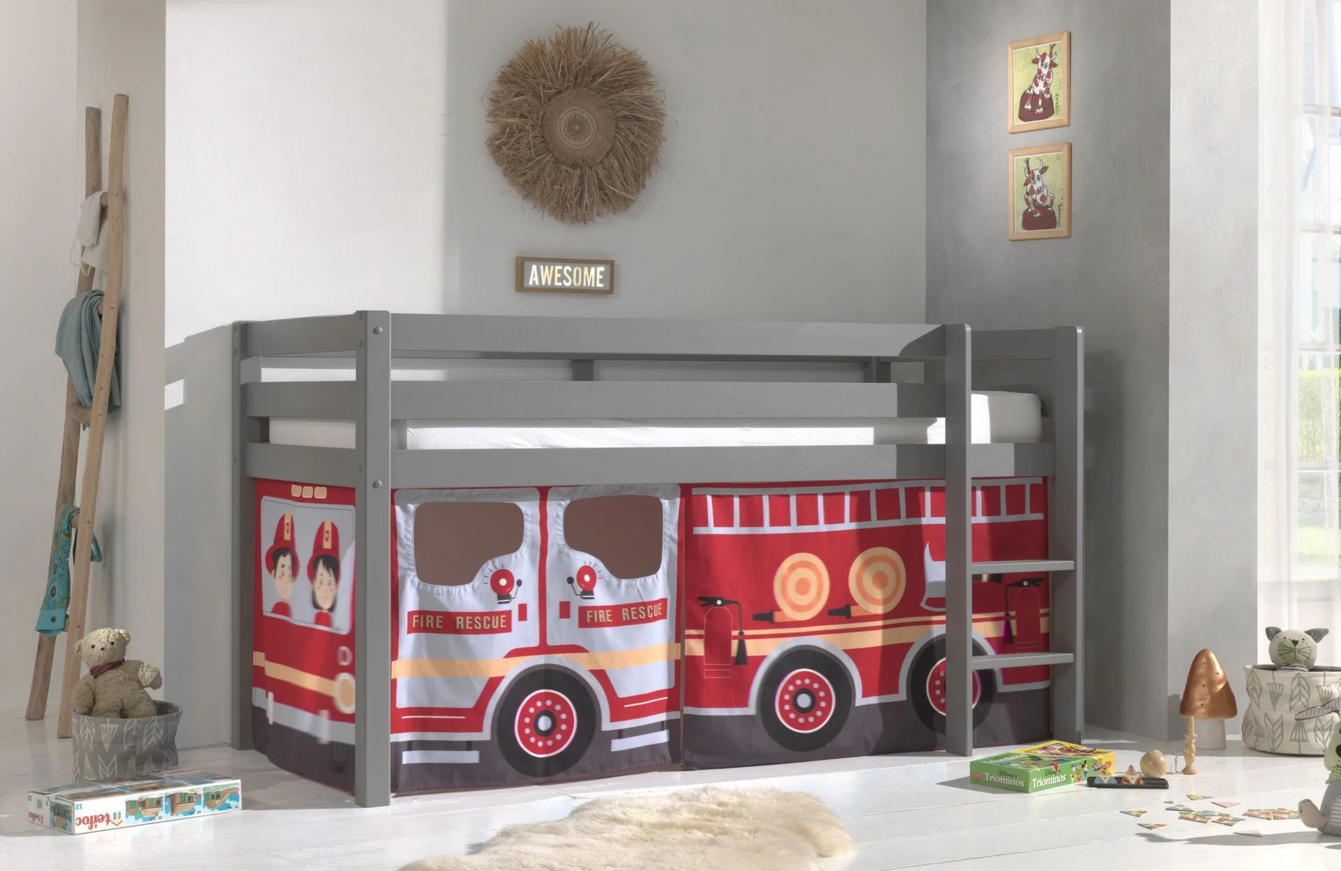 Cette tente de lit “Fire Truck” est le complément parfait des lits mi-hauteur Charlotte et Astrid. Le rideau se compose de trois parties qui peuvent être attachées avec du velcro. La tente en coton rouge est imprimée d’un camion de pompiers. Transformez la chambre d’enfant en un véritable paradis du jeu pour les petits pompiers.