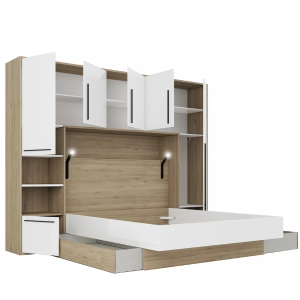 Lit Double Moloko 140x190cm – Blanc Brillant Et Aspect Chêne