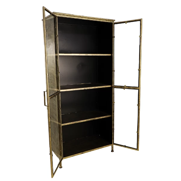 Vous avez une belle collection de souvenirs ou d’accessoires de maison ? Puis, exposez-les dans cette magnifique vitrine Fletcher. La finition en laiton antique et les poignées marquantes donnent à cette armoire un bel aspect antique et luxueux. Les trois étagères offrent un grand espace de rangement et les portes en verre mettent votre collection en valeur. Les portes sont en verre de sécurité.