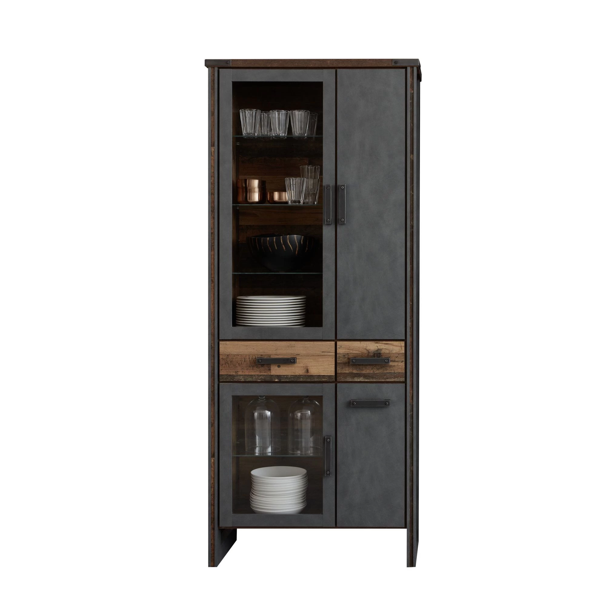 Fabriquée dans un souci d’excellente robustesse, la feuille décorative utilisée garantit la durabilité. Le décor Vieux Bois du caisson apporte une touche de sophistication et fait de cette vitrine un véritable accroche-regard qui s’intègre parfaitement dans toutes les pièces.